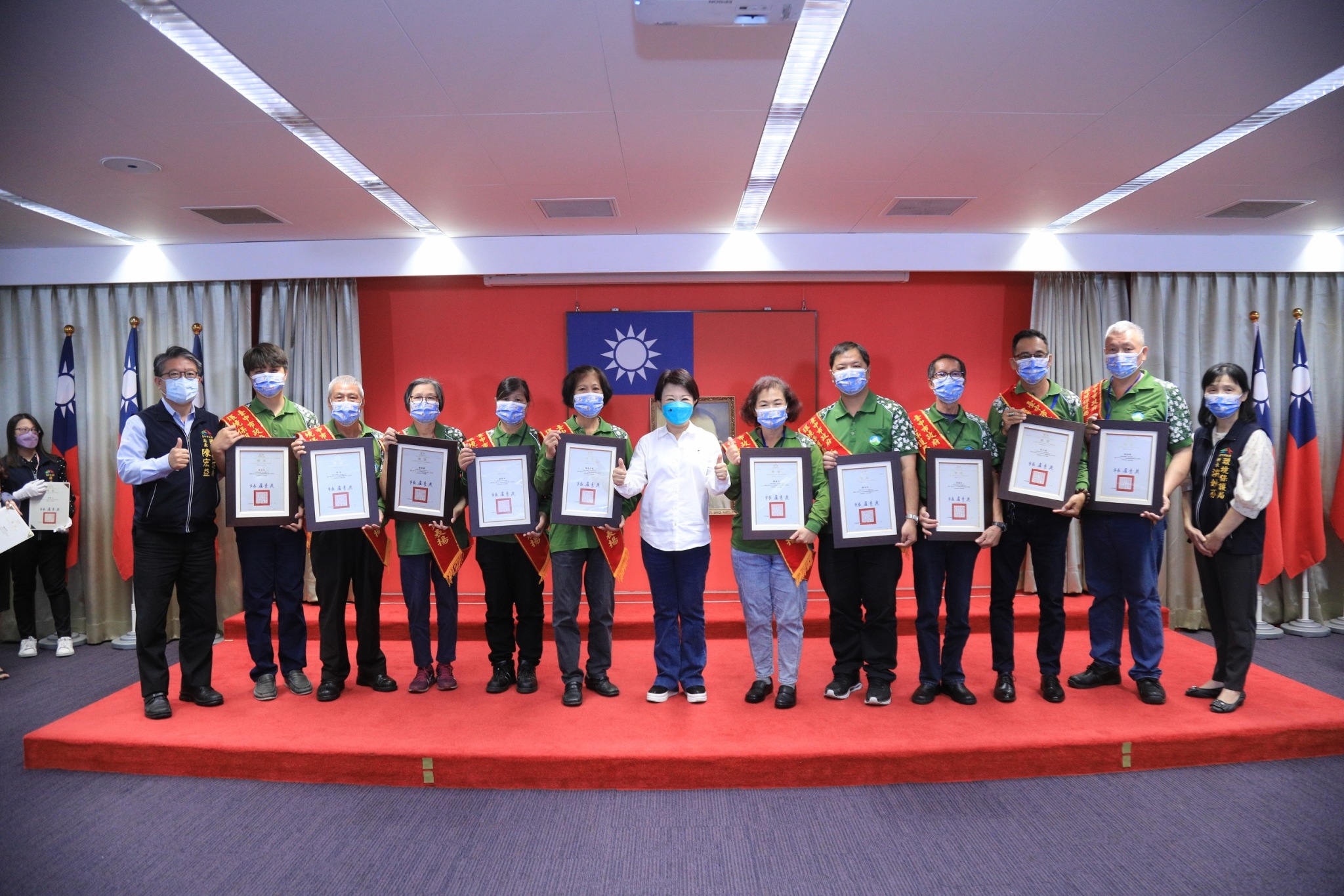 環保局表示,台中被公認為最宜居城市,清潔隊員每日扮演著「城市化妝師」,這次共推派中西區隊員林家安、東南區隊員賴阿蘭、南屯區隊員楊黃美鳳、北屯西隊員張淑女、西屯區隊員侯方森、豐原區隊員郭福財、大里區隊員林溢珅、太平區隊員賴淑貞、大甲區隊員紀允及空噪科劉原彰等10位擔任受獎代表,堪稱清潔隊員學習典範。