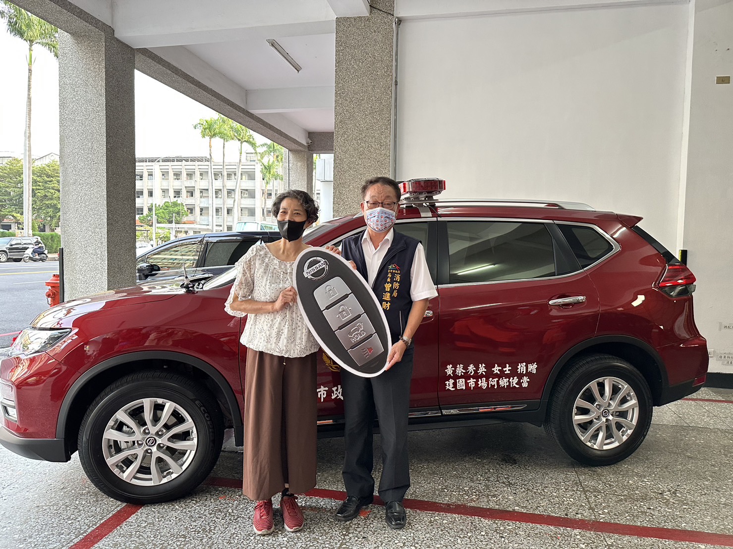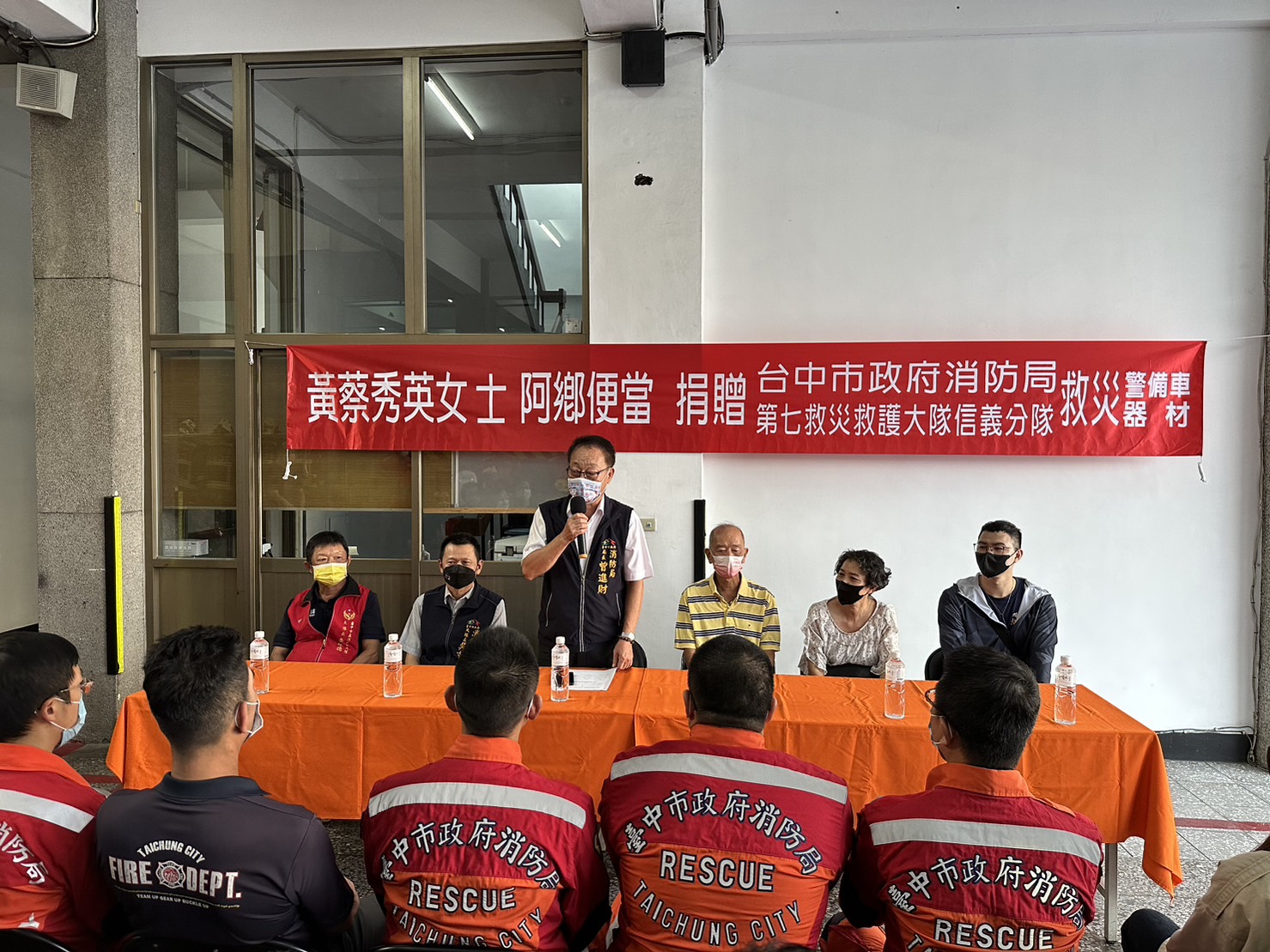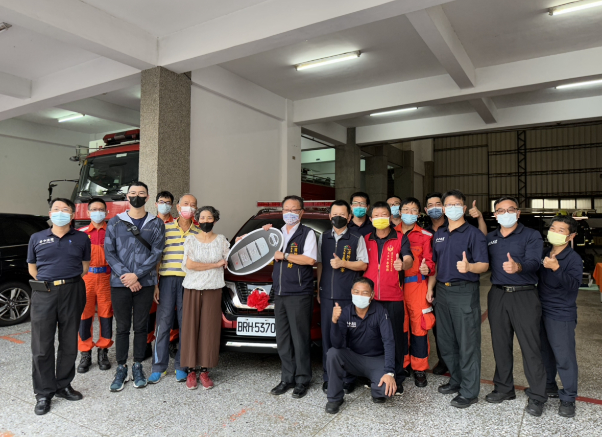 台中市政府消防局信義分隊位於市中心,為救災救護勤務最繁忙的分隊之一,救災常需警備車載送人員及裝備器材前往現場。阿鄉便當店老板娘黃素月得知分隊警備車不足,決定以其亡母黃蔡秀英女士名義,與她的兒子一起捐贈警備車及救災救護器材,除提升救災救護效能,也保障消防人員的安全。捐贈典禮今(21)日於台中市政府消防局信義消防分隊舉行,由消防局長曾進財代表受贈,並回贈感謝狀。