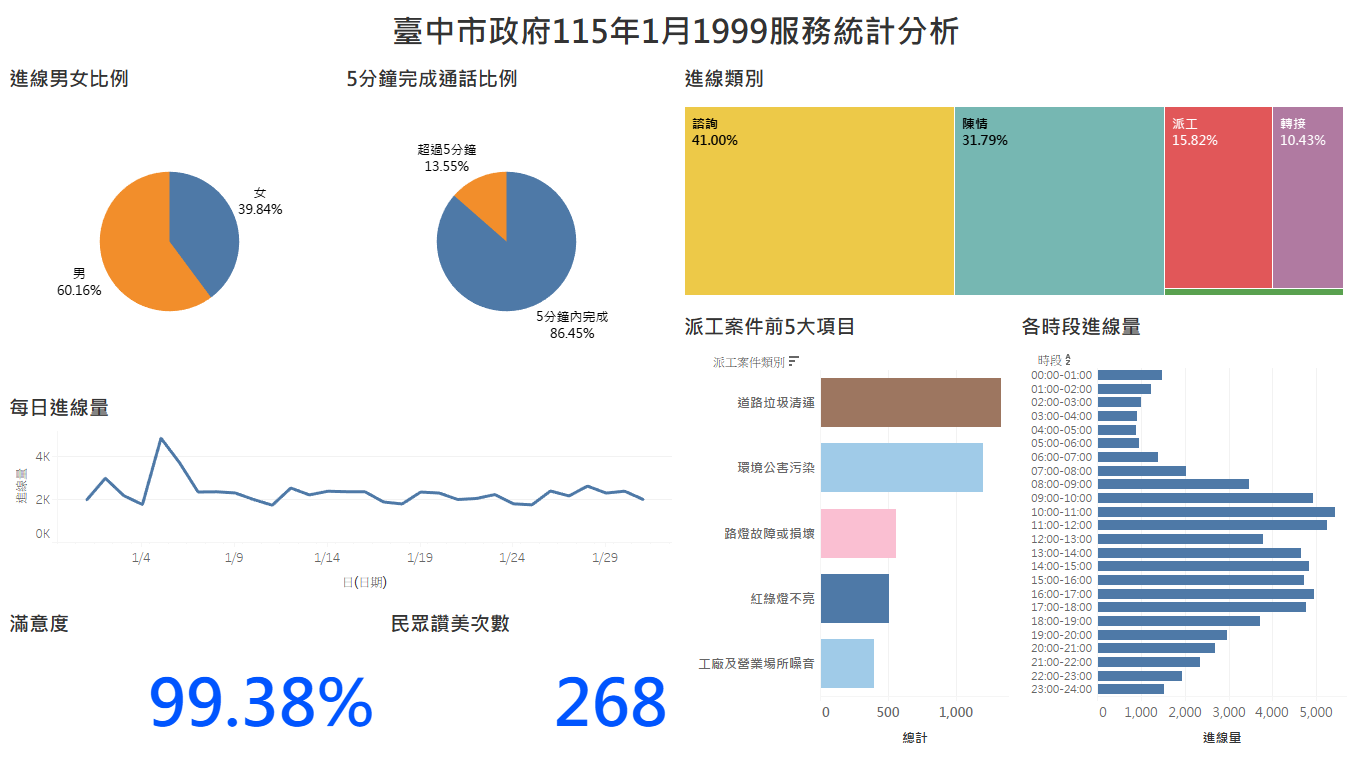 臺中市政府114年1月1999服務統計分析