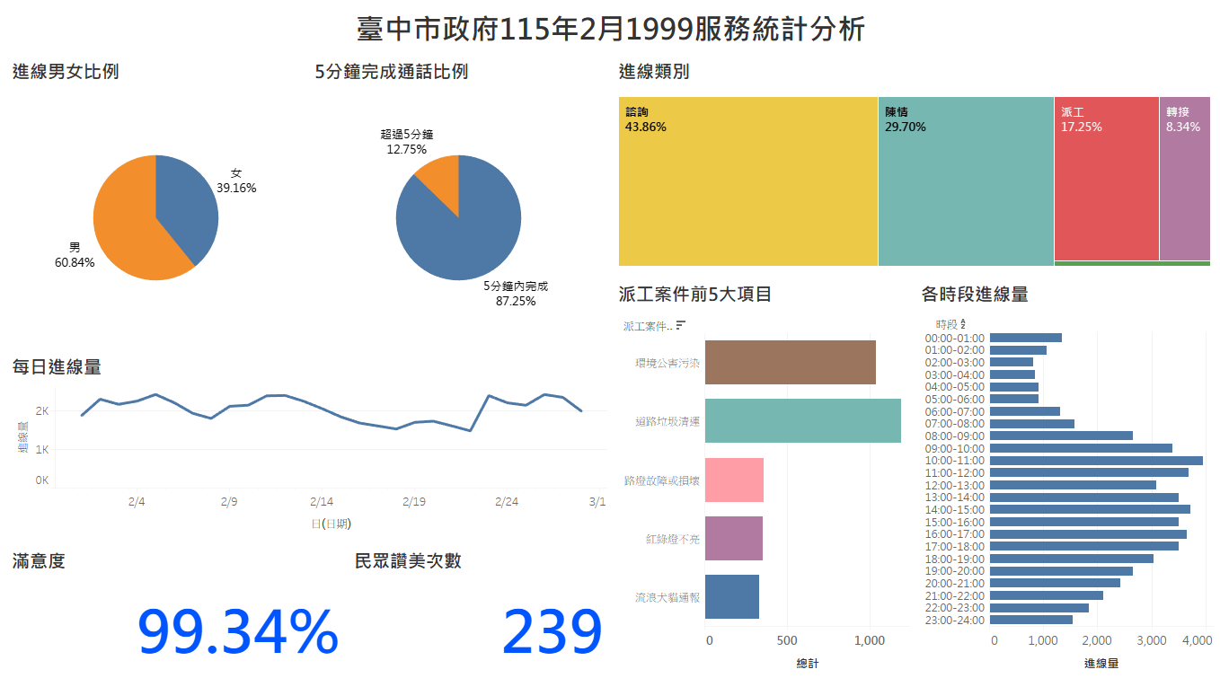 臺中市政府114年2月1999服務統計分析