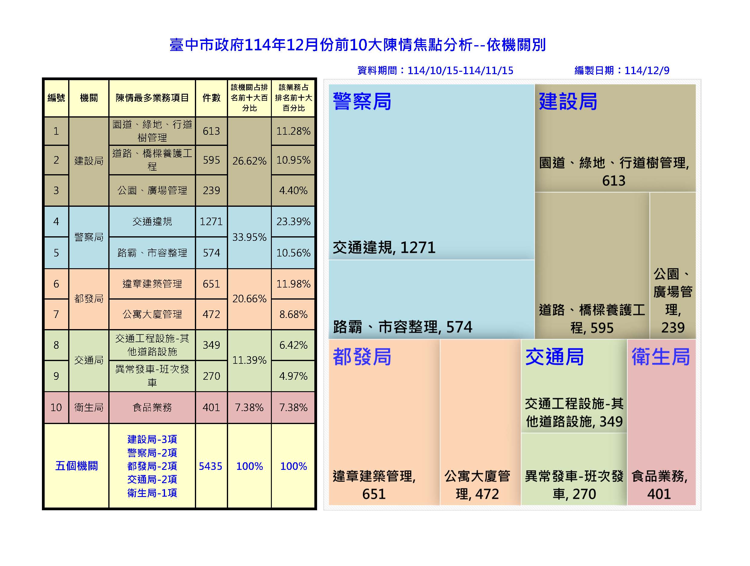 台中市政府10大陳情焦點分析-業務別及機關別
