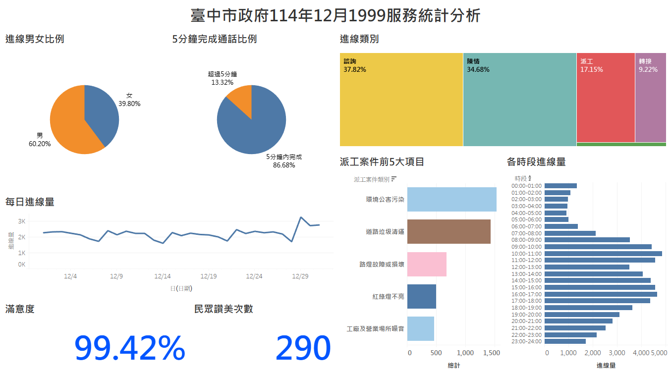 臺中市政府1999服務統計分析