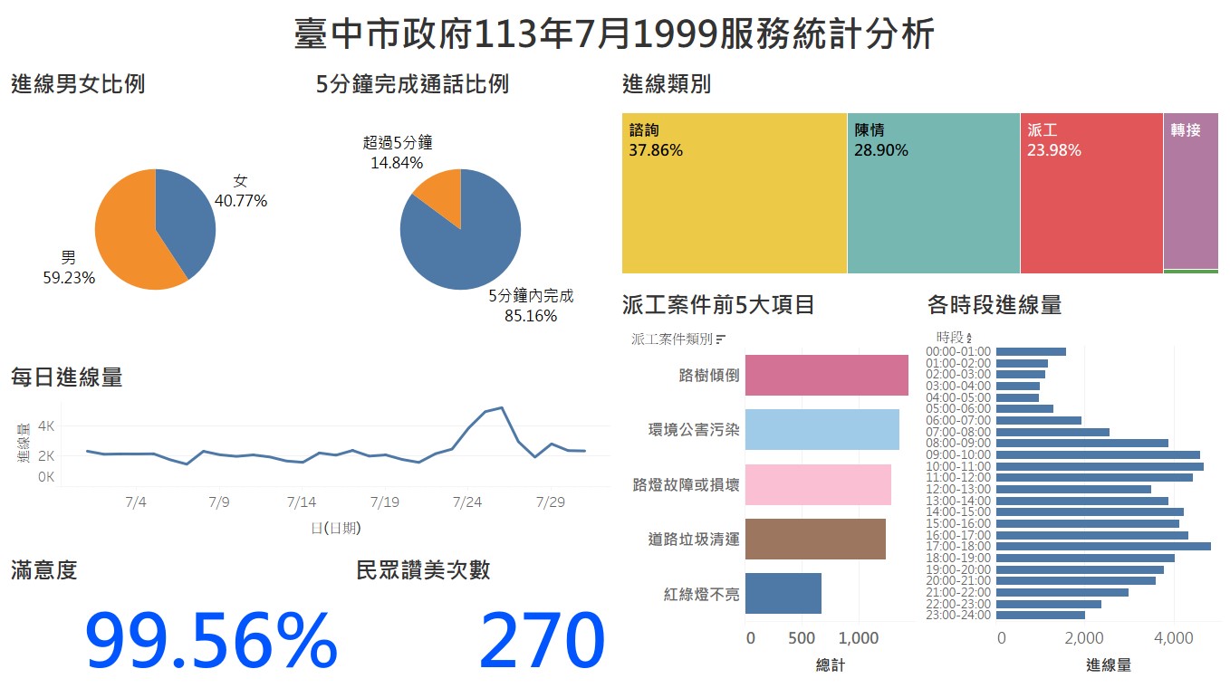 臺中市政府113年7月1999服務統計分析