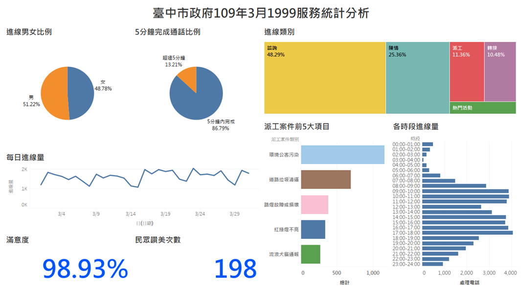 臺中市政府109年3月1999服務統計分析