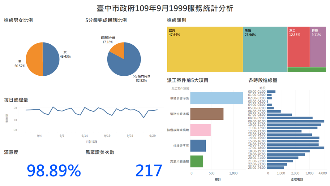 臺中市政府109年9月1999服務統計分析