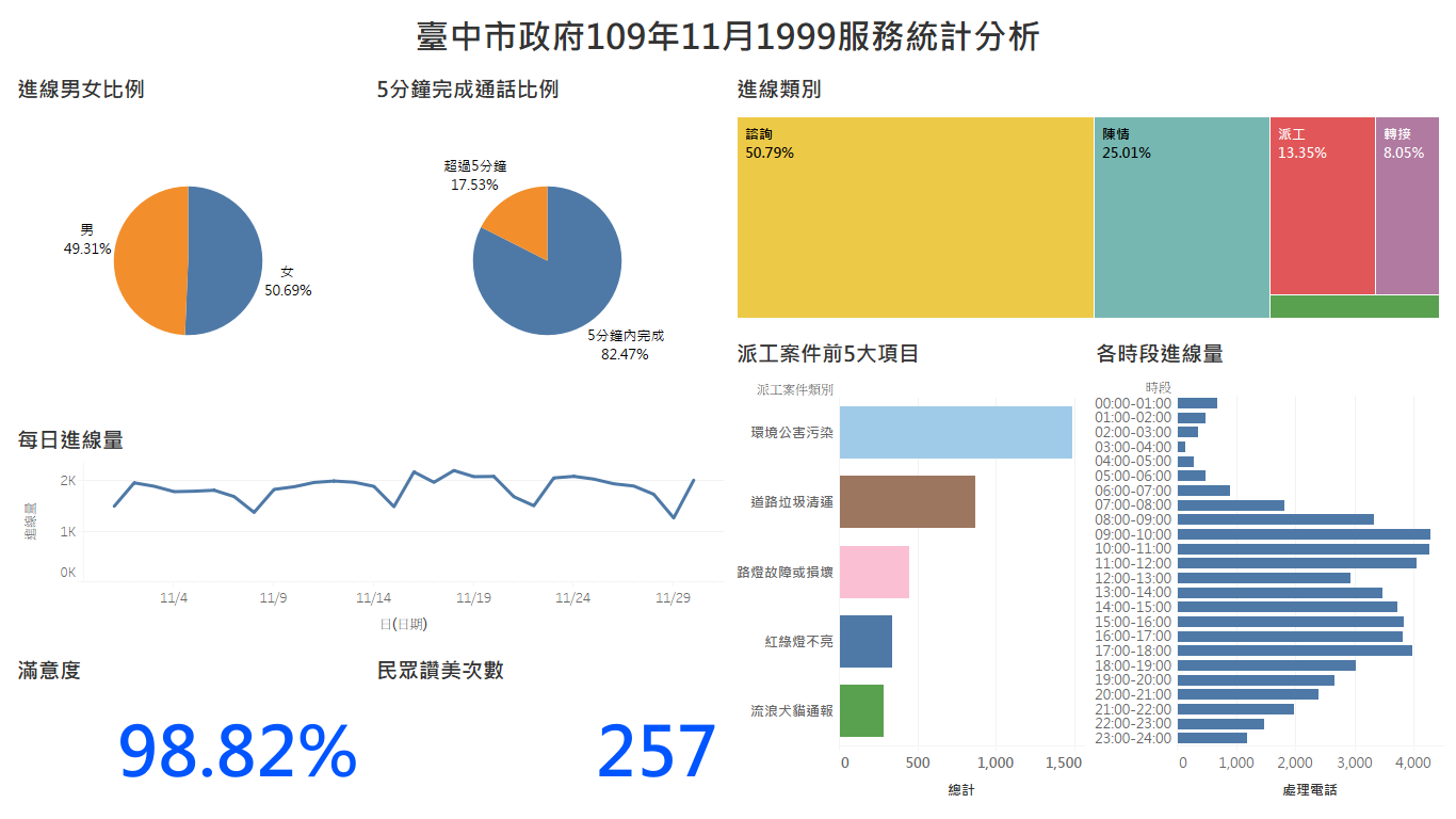 臺中市政府109年11月1999服務統計分析
