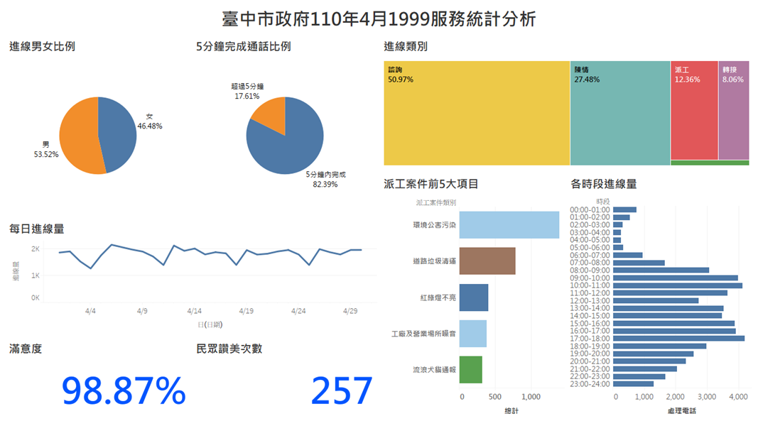 臺中市政府110年5月1999服務統計分析