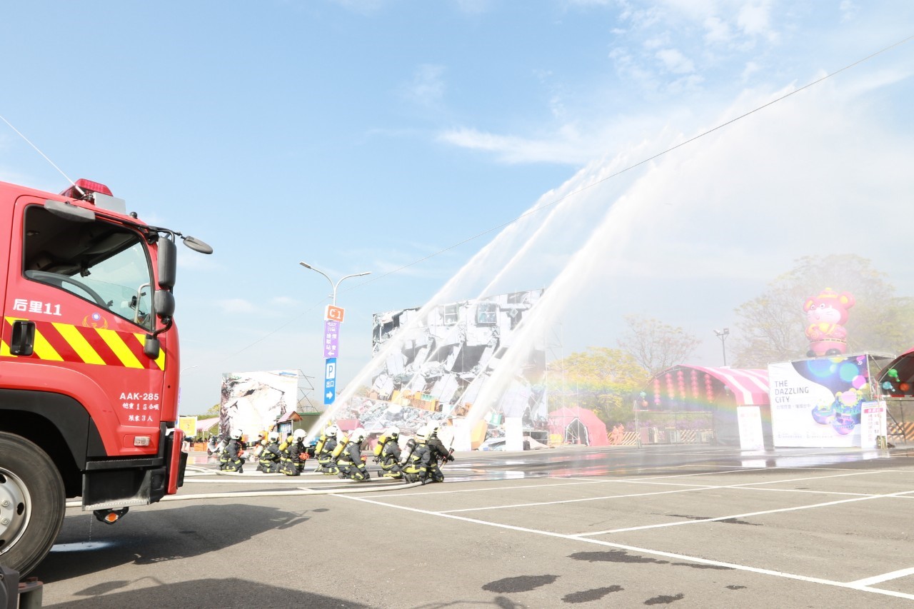 消防局也指出,市府新購置的「重型救援器材車」也在演習亮相,利用車內搭載氣壓支撐柱、油壓破壞工具、氣動頂舉袋及救災輔助器具,搜救人員以頂昇、支撐、剪切、穩固及牽引等方式,快速將倒塌建築物受困民眾救出,大幅提升重大特殊災害搶救能量。