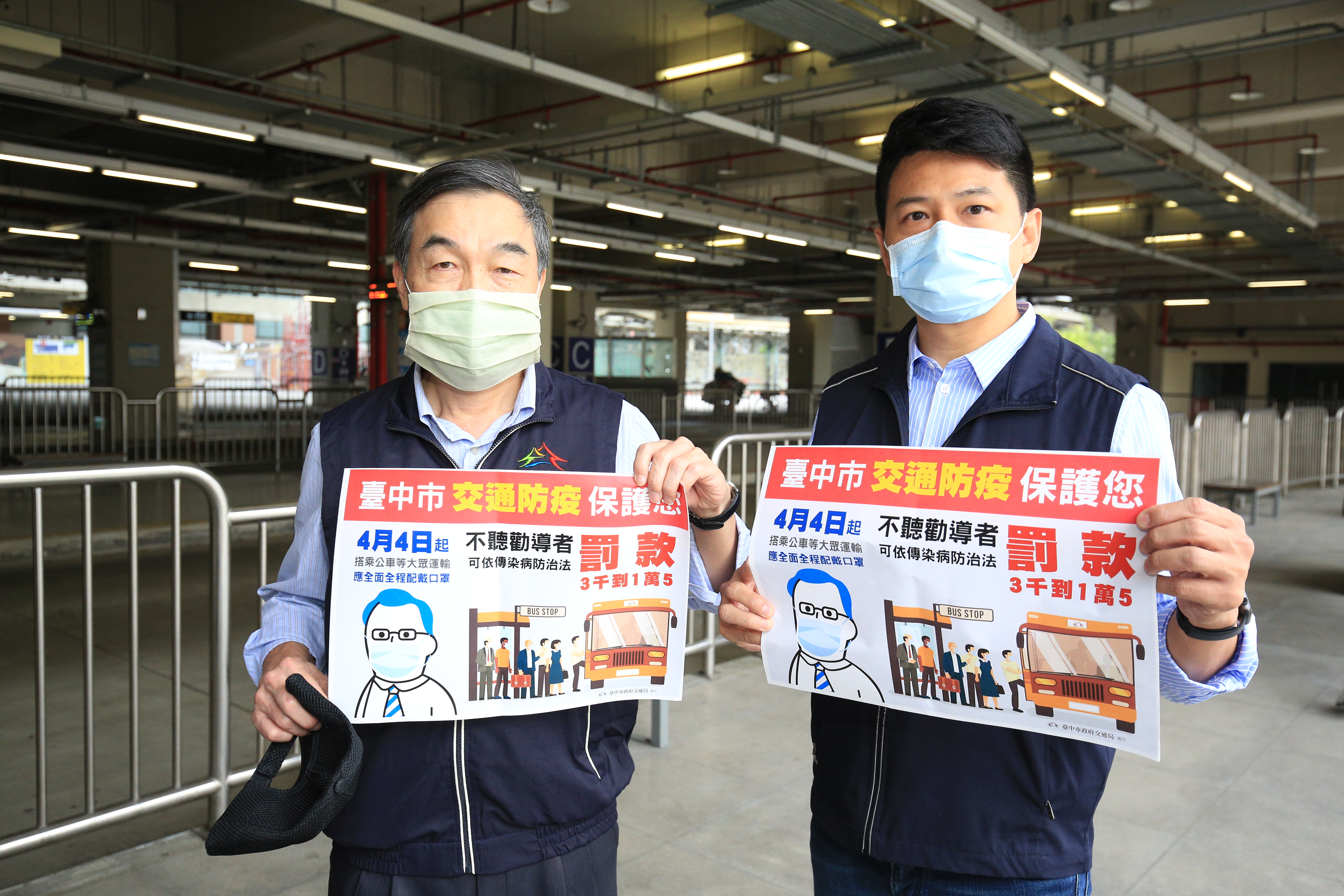 葉局長指出,市府昨日起配合中央政策,民眾在台中市搭乘公車應全程配戴口罩,並禁止於車內飲食,全市公車內、外及車站均已張貼告示海報宣導,盼民眾共同配合防範疫情。
