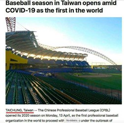 全球重要運動賽事因新冠肺炎相繼延期或停辦,台中市獨步全球創下「四個全球第一」,包括第一場職棒運動賽事、第一場開放球迷入場觀賽、第一場職業運動選秀會、中華職棒總冠軍賽第一戰,屢獲世界棒壘球總會(WBSC)與國際媒體報導,更被《時代雜誌》(《Time》)評為2020年度大事。運動局長李昱叡表示,在市長盧秀燕帶領下,讓世界看見台中面對疫情的謹慎與努力,讓運動賽事穩定發展。
