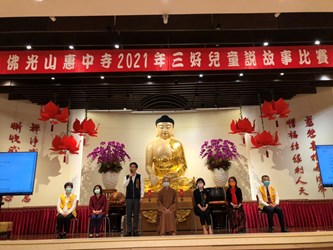 佛光山推廣「做好事,說好話,存好心」三好理念,今(11)日在台中惠中寺舉辦已有20年歷史的「2021年三好兒童說故事比賽」,分為國語、閩南語、英語及客語組四大類,超過300位學童報名,學童們精心打扮,手持道具,透過生動的口語表達精彩詮釋「勸人為善,淨化人心」的勵志故事,讓三好理念在學童及家長心中萌芽、扎根。