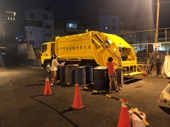 環保局表示,國內疫情升溫,各縣市同步加嚴、加大防疫措施、嚴守社區防線,豐原區清潔隊要求進入停車場區丟垃圾的民眾量測體溫、酒精消毒雙手及佩戴口罩,並規劃一進一出的人流動線以保持社交距離,減少接觸風險,更出動全台體積最大的霧砲車每半小時消毒場區一次,民眾外出倒垃圾可以很安心。