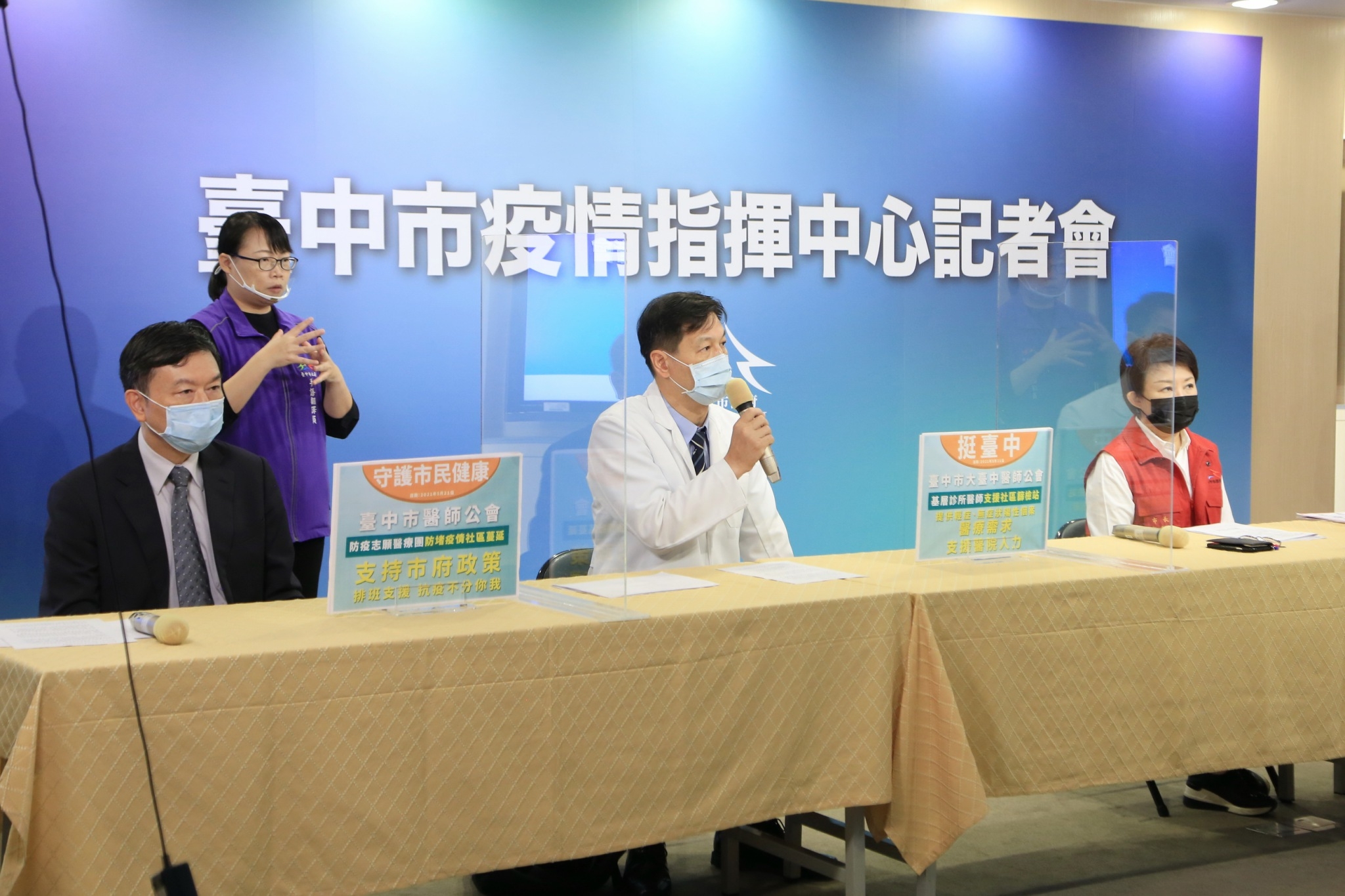 台中市大臺中醫師公會理事長魏重耀指出,大臺中基層醫療能量充足,去年在市府指導下,自動自發籌組醫療團,去年約60位醫師參加,近期因疫情嚴重,在公會號召下,上百名醫護自願加入,各科別醫師除將提供視訊診療,也將投入支援篩檢人力,全力支持台中防疫政策,維護民眾健康。