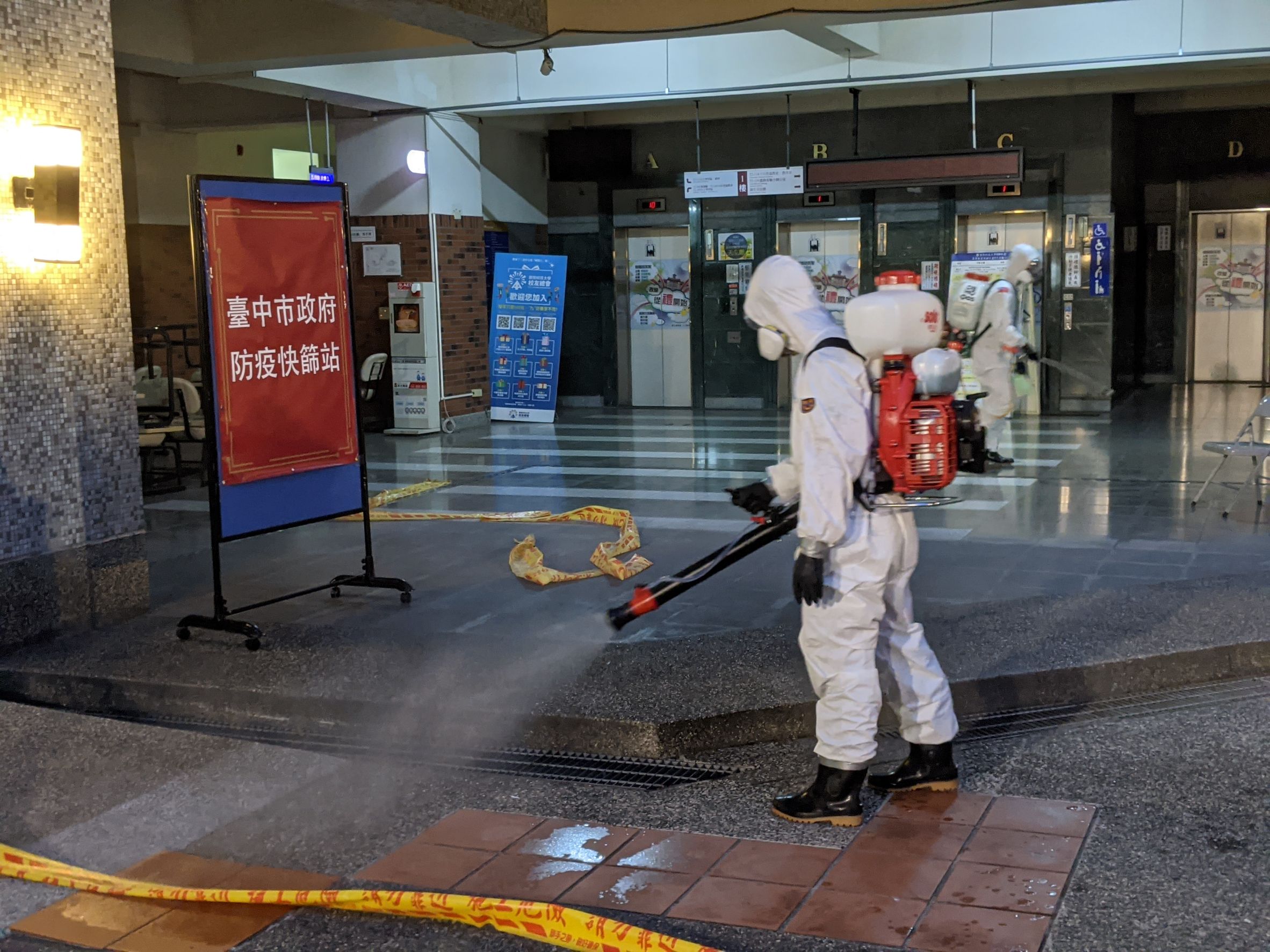 因應霧峰區朝陽科技大學夜唱團本土確診傳播案例,台中市政府20日起於該校設立前進指揮所及快篩站,連日為1,168位學校師生快篩,共29名快篩陽性個案,再經進一步PCR核酸檢測,29名全數確認為陰性。市長盧秀燕昨(22)日宣布前進指揮所及快篩站於當日下午任務結束後撤離,為確保校園及周邊環境安全,環保局昨日傍晚隨即偕同陸軍十軍團36化學兵群深入朝陽科大校園及周邊戶外公共環境,全面消毒,請市民及師生放心。