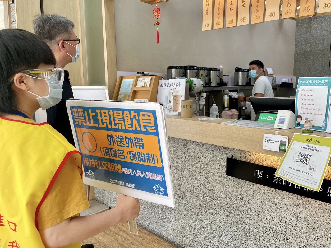 經發局表示,市府現階段防疫第一,每日皆會持續派員至各公民有市場、夜市、商圈稽查各項防疫措施,同時自5月22日起至6月8日止,台中市餐飲業、便利商店、超級市場、百貨公司、量販店、連鎖加盟店、夜市、市場、商圈或其他相類的餐飲場所禁止現場飲食,店外也不能脫下口罩飲食,一律採用實名實聯制外送、外帶,若違反且拒絕改善者,將依照傳染病防治法規定,處3000元以上、1萬5000元以下罰鍰。
