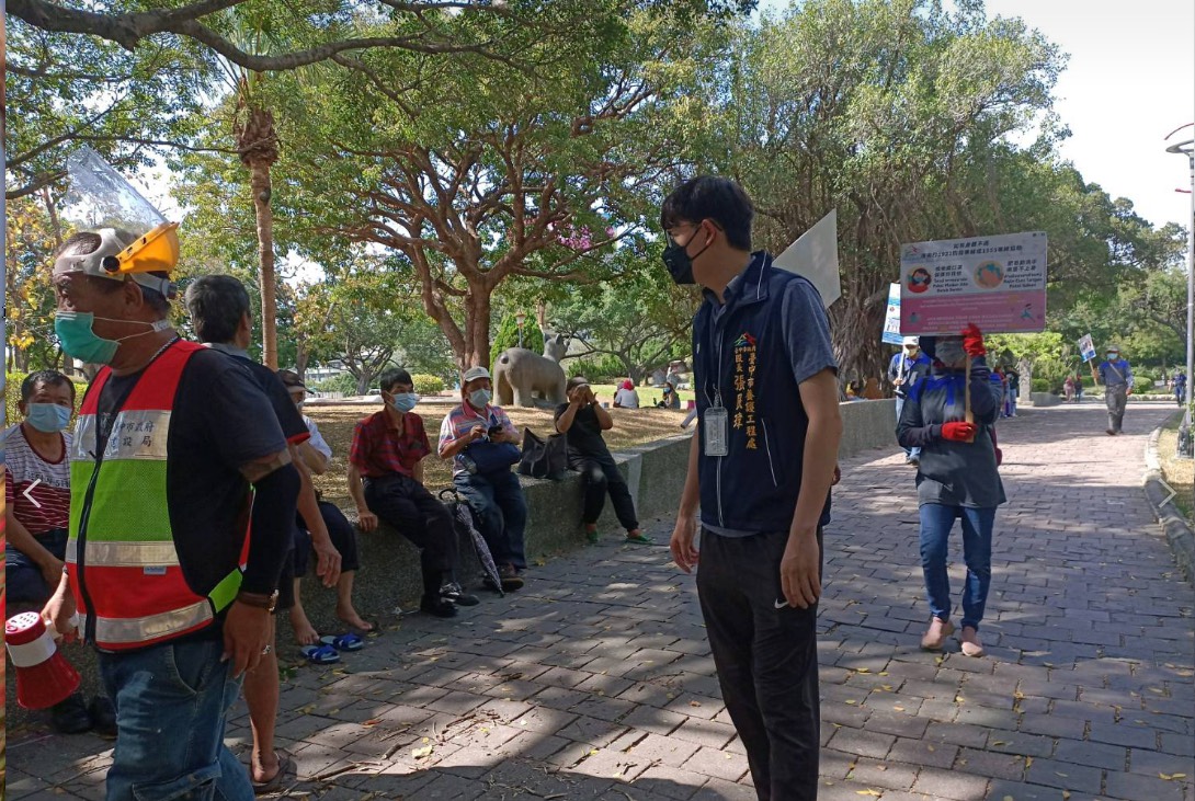 「防疫人人有責!」陳局長表示,建設局落實防疫規定,平日保全及維護人員加強巡查,週末連假安排同仁於熱點區域進行走動式防疫宣導,提倡正確防疫觀念,大多數民眾都願意聽從勸導並配合規定,針對違規民眾則依法開罰,包括草悟道裁罰1群聚案30萬元、福星公園2案未佩戴口罩各3000元,共3張裁罰單。