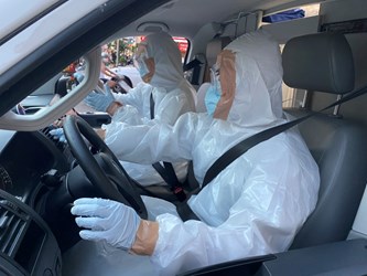 消防局指出,每次執行防疫救護勤務,須有2名救護人員全程穿著防護衣送醫,返隊前先於醫院實施清消作業,返隊後再由另1名消防人員著防護衣實施二次清消作業,因此執行一趟防疫救護勤務至少須耗費3套防護衣,且救護車上也須放置備用防護衣,避免暴露在感染風險中,防護衣需求相當大。
