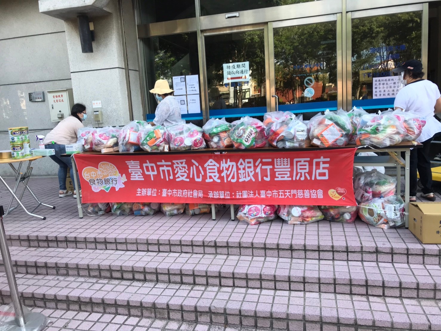 台中市政府社會局表示,台中市約有1,500戶愛心食物銀行受助戶,配合中央疫情三級警戒規定,發放站事前均進行清潔消毒,於出入口張貼防疫宣導單,現場發放採實聯制,並有志工管制出入口、測量體溫及消毒手部,檢查出入人員是否佩戴口罩、發放場域設置排隊間隔,維持社交距離;受助戶超過30戶以上轄區,事前通知分流領取,若超過限制人數,則由志工將物資拿至出入口給受助戶。