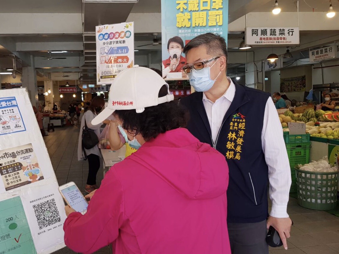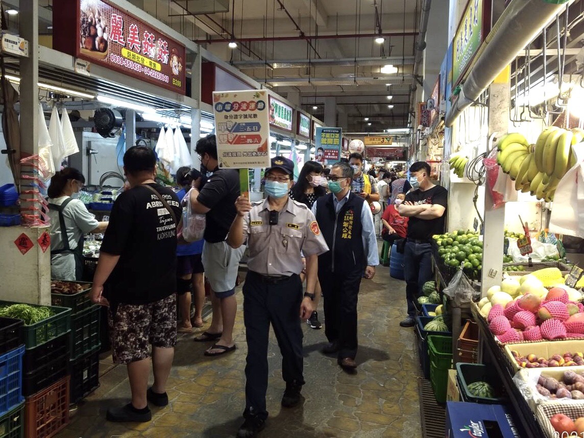 經發局長張峯源表示,市府推出「市場分流運動」,民眾按身分證字號尾數到市場分流採買,單數每周三五日、雙數每周二四六,獲得廣大市民肯定且皆願意配合,各市場自治會也響應推動,市府為讓更多民眾及攤商知道此項政策,持續至各市場廣為宣導,盼透過人潮分流降低群聚感染風險。