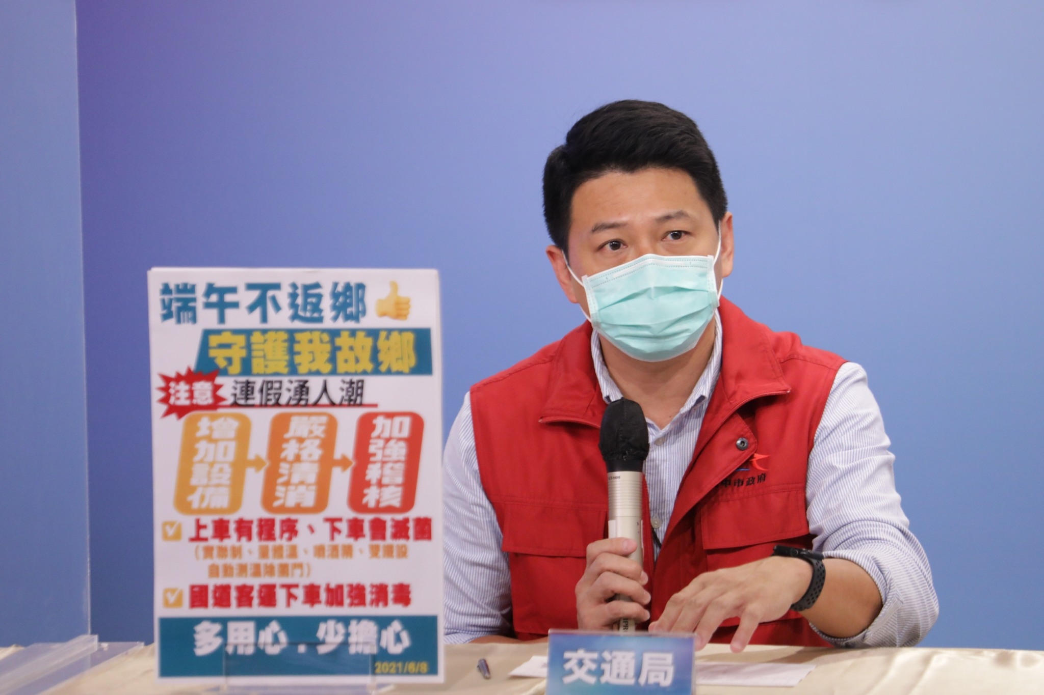 盧市長今日下午主持台中市流行疫情指揮中心線上記者會表示,昨日她公開呼籲「端午不返鄉,守護我故鄉」,鼓勵民眾減少跨縣市移動,目前雙鐵、國道客運退票有增加趨勢。另外,雖然中央已規定雙鐵、國道客運等大眾運輸工具,上車時須落實防疫措施,包含實聯制、量體溫、噴酒精,但現在是「防疫緊要關頭」,因此市府在民眾下車時也加強消毒工作,達到清消目的,讓疫情可早日解封。