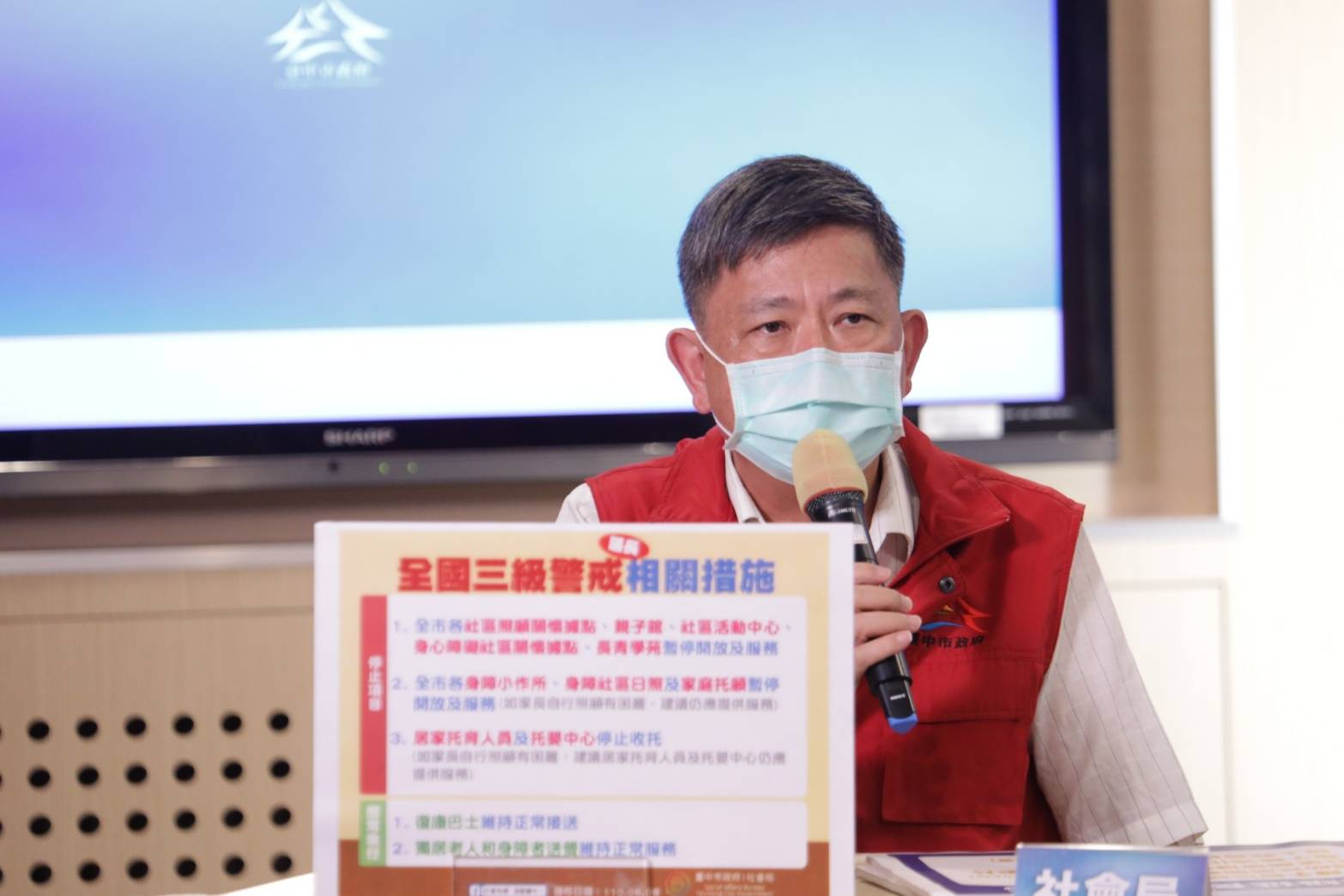 社會局長彭懷真指出,台中市社區關懷據點有430處,還有親子館、社區活動中心、身心障礙社區關懷據點及長青學苑等皆暫停開放服務;全市各身障小作所、身障社區日照及家庭托顧也暫停開放,若家長自行照顧有困難,市府會協調小作所及日照提供服務。另,托嬰中心今年5月中已停止收托,若家長自行照顧有困難,居家托育人員及托嬰中心也可提供服務。