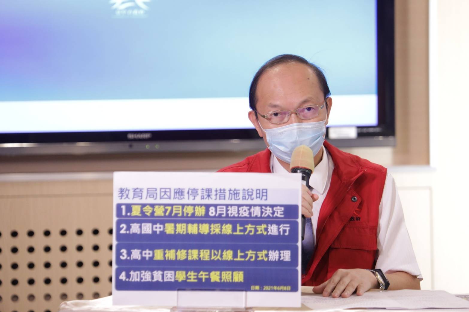 「停課不停學!」教育局長楊振昇指出,夏令營7月停辦、8月視疫情狀況盡早宣布是否辦理,若辦理,相關籌備工作也將提早進行;另高、國中暑期輔導課程採線上視訊進行;高中生重補修課程也請學校採線上視訊辦理,若有些為實作課程,無法線上進行,建議學校彈性調整課程順序,採「從寬認定、彈性處理」。