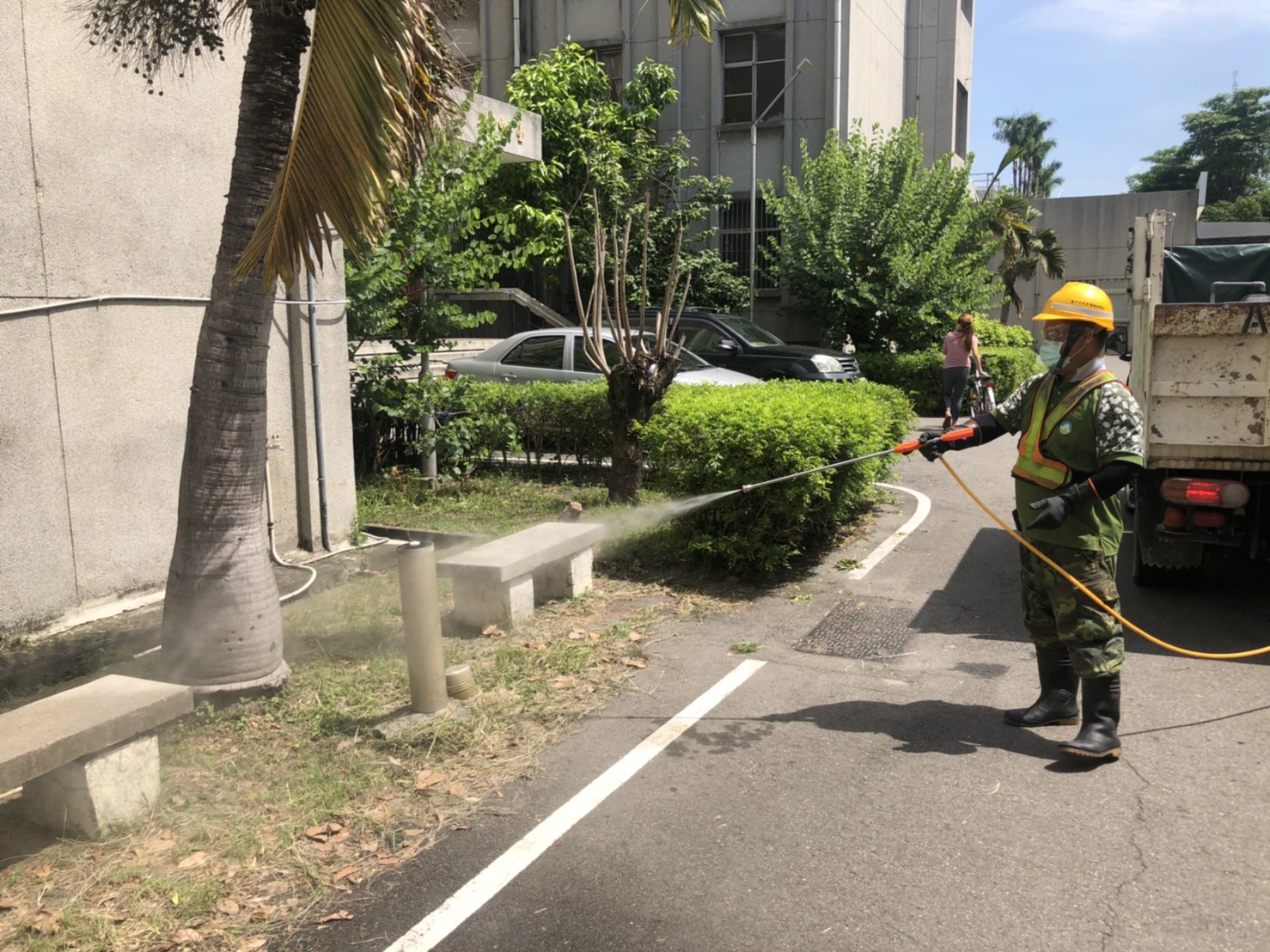 環保局長陳宏益說明,移工宿舍人口密度高,宿舍內餐桌、衛浴設備、洗衣機都為公用,若於宿舍室內沒有做好相關防疫措施,可能變成病毒傳播的溫床。為降低生活周邊環境潛在疫情傳播風險,環保局特別出動防疫消毒大隊人員鎖定移工人數密集的工業區、及宿舍周邊戶外公共環境進行全面防疫消毒作業。