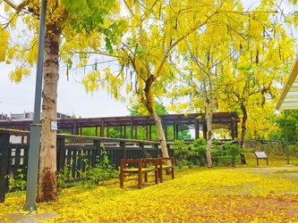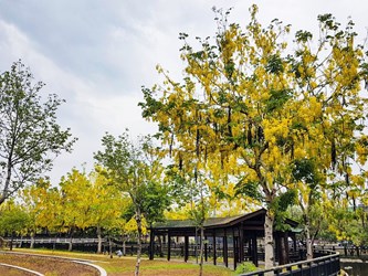 陳局長表示,有「黃金雨」稱號的阿勃勒,常作為台中市景觀樹木,以北屯區旱溪東路、西路及南區興大路最具盛名,串串的金黃小花掛在枝頭,每年5月至6月伴著微風搖曳,於街道上隨風飄落,是夏季吸睛的必拍風景。