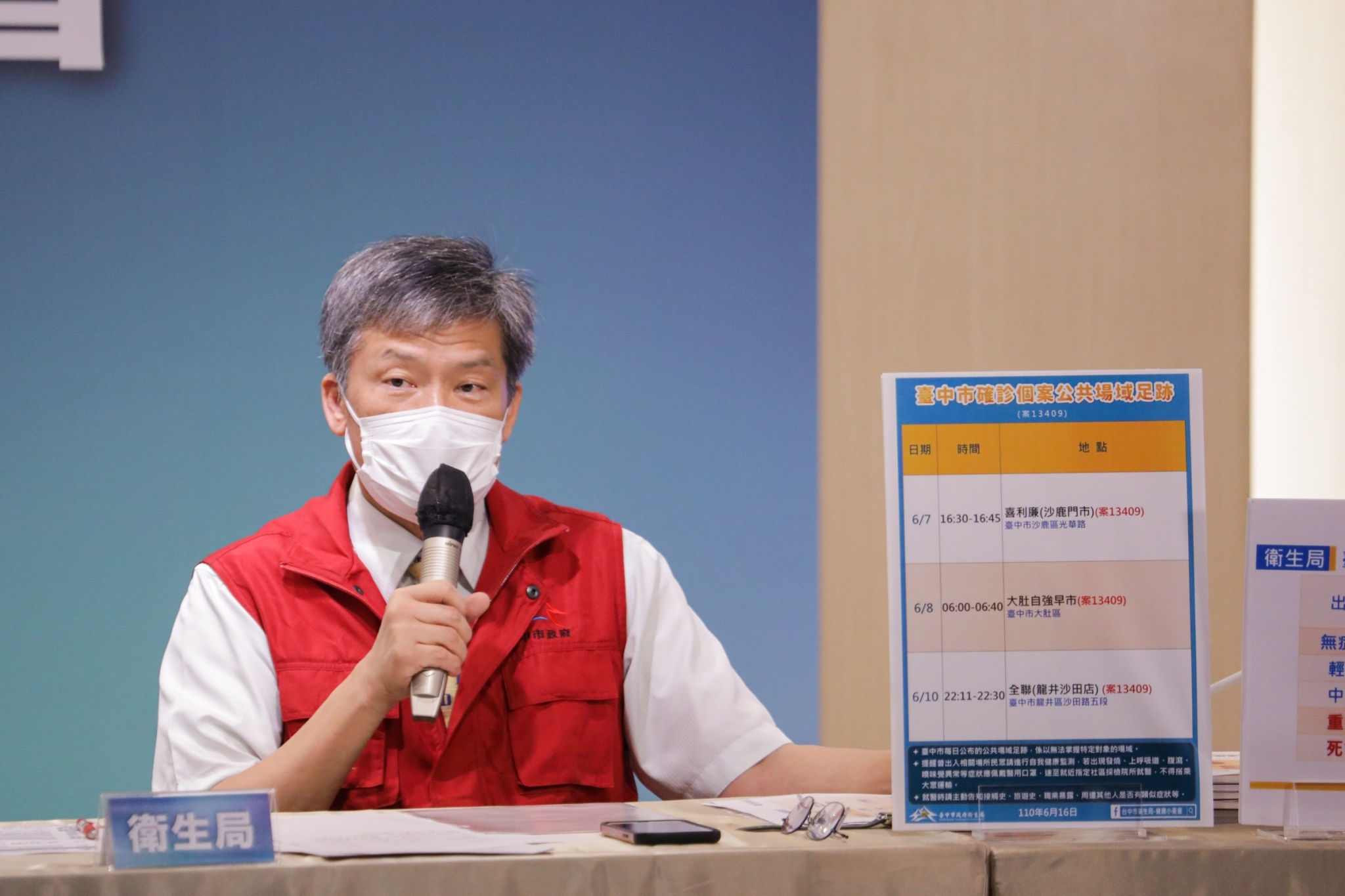 該案6月7日解除居家隔離後,曾到喜利廉沙鹿門市,8日曾赴大肚自強早市,10日曾至全聯福利中心龍井沙田店,14日後開始出現不適症狀,15日騎車至醫院就診,經PCR檢驗確診。