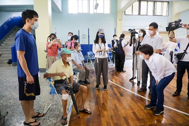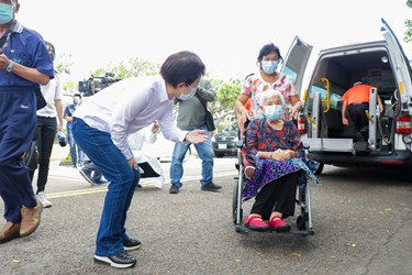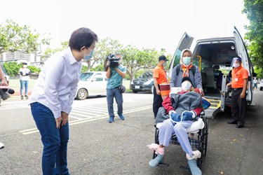 盧市長表示,這一批老人疫苗的注射提供幾項服務,第一、免預約直接發通知單;第二、提供身障不便長輩交通接送服務,台中市85歲以上行動不便曾搭乘復康巴士的身障長輩大概有1400人左右,其中A級的身障長輩(行動不便程度較高)約400位,社會局主動電話聯繫關懷協助預約,估計這三天復康巴士接送約90名身障長輩施打疫苗,服務計170趟次。