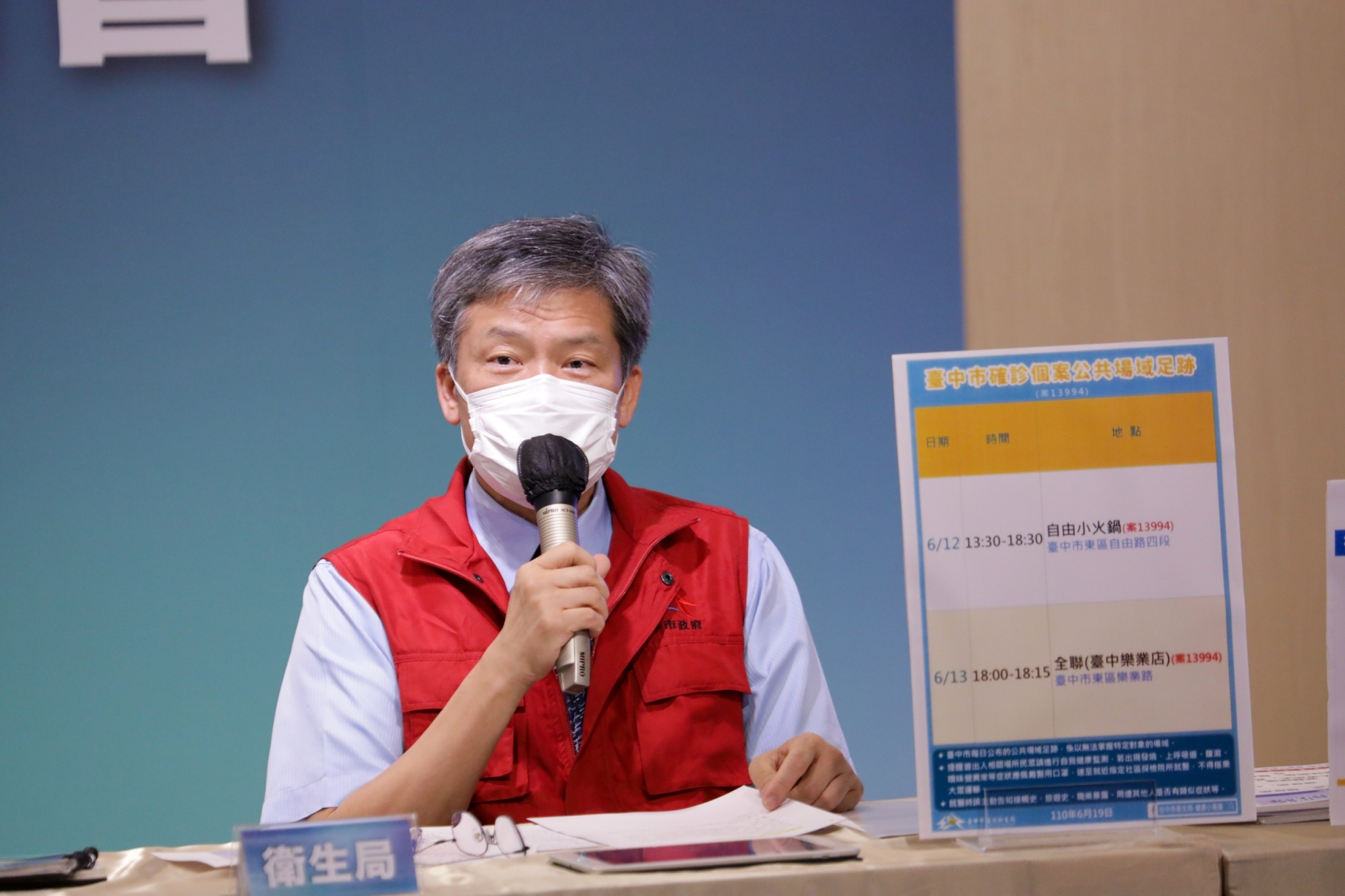 台中市今(19)日新增1名本土確診案例,衛生局長曾梓展說明,案13994為東區42歲女性,在自家家族經營的「自由小火鍋」工作,接觸者包括3名同住家人與13名親友,已匡列居家隔離與採檢,同時針對足跡史全面清消;此外,截至今日中午12時,台中市新增4起疑因接種疫苗後死亡案例,累計10起。