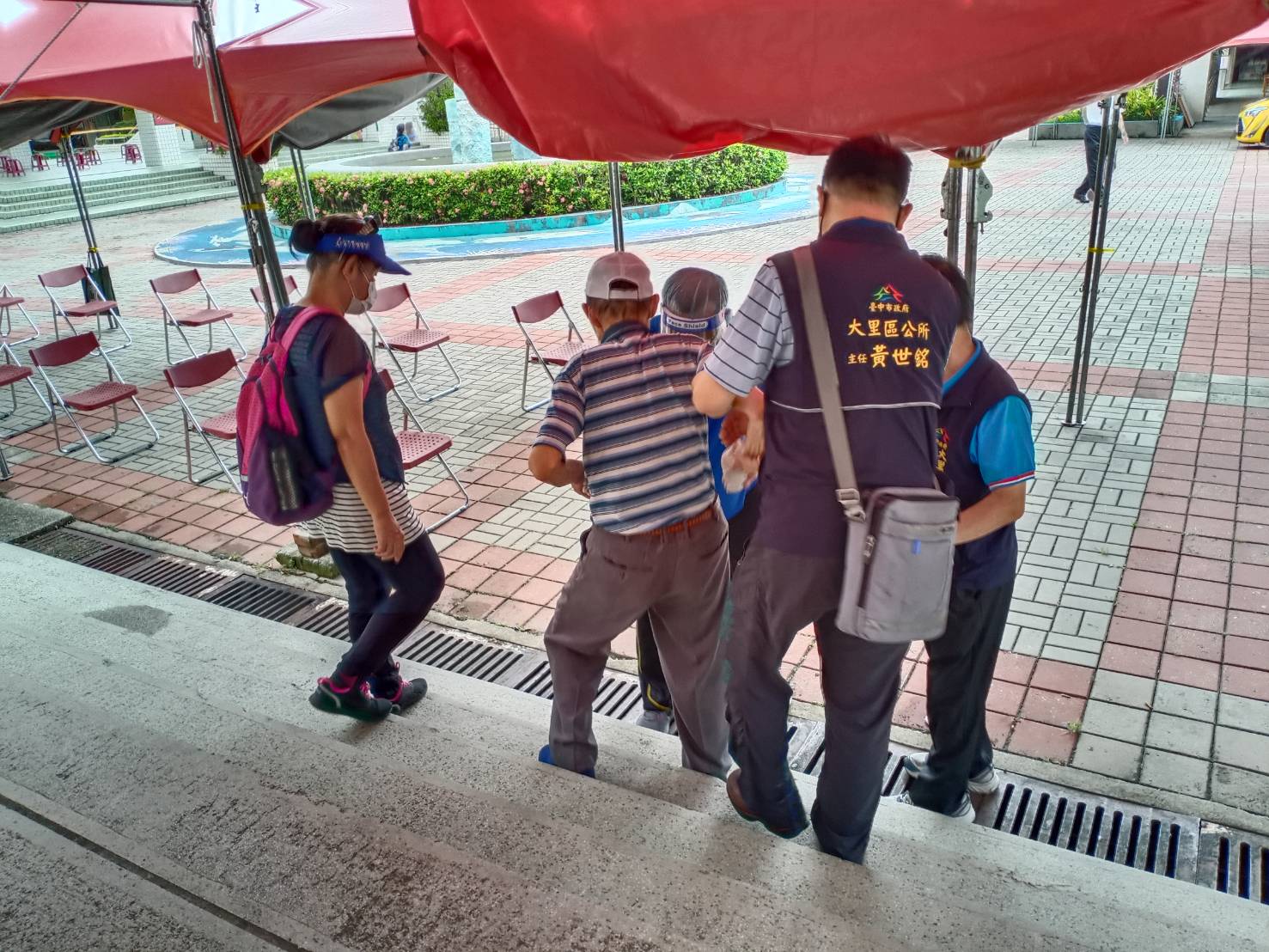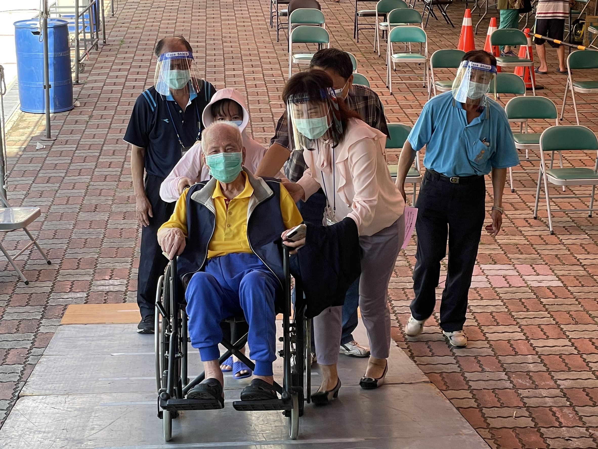 台中市第二波疫苗19、20日在65個疫苗快打站開放80歲至84歲長者優先施打,不料氣候不佳,兩日陣雨頻頻,民政局長吳世瑋表示,為減少長輩雨中接種不便,全市各快打站竭盡巧思,不僅事前架設活動式棚架,並增派人員協助撐傘攙扶、充當人力拐杖,以及鋪紅毯減少地面濕滑等貼心服務,帶給到場接種的阿公阿嬤滿滿的安心與信任。