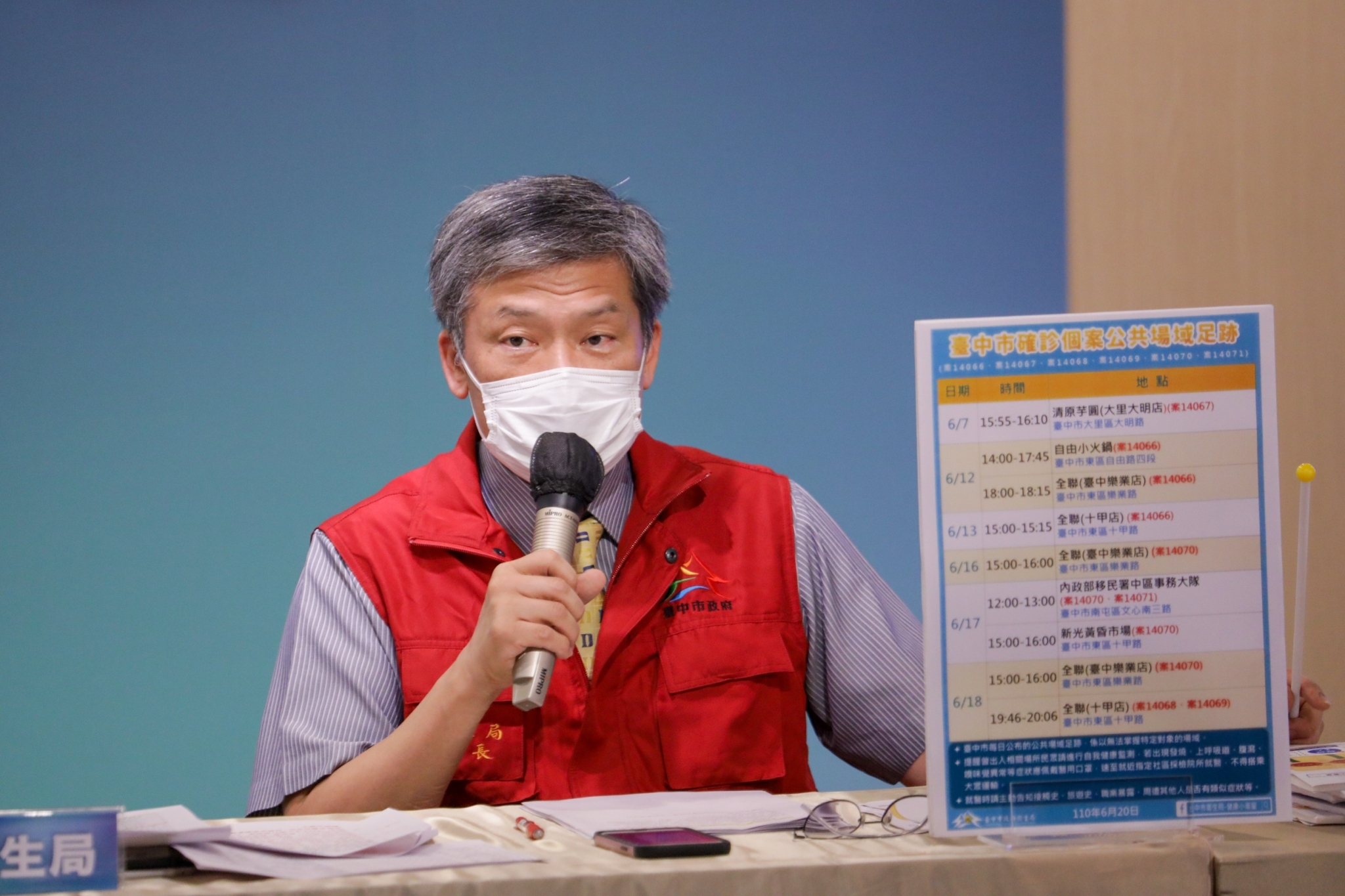 曾局長補充,此次群聚案家庭主要居住在東區與大里區,目前未有擴散情形,但謹慎起見,市府今日已請國軍台中總醫院自9時至17時、大里仁愛醫院自14時至17時提供快篩服務,如有足跡重疊或不適症狀者可前往篩檢。(6/20*14)*衛生局