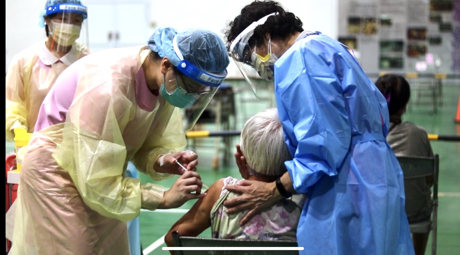 石岡區土牛快打站暖心醫護人員安撫長者接種疫苗緊張情緒