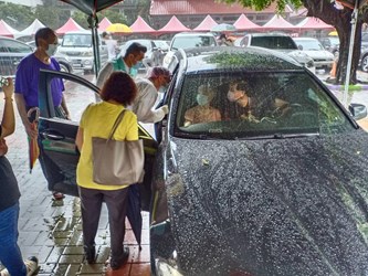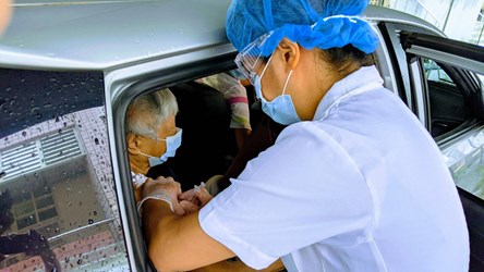 吳局長表示,體恤長者行動不便,本市7成快打站注射方式參採日本宇美町式施打法,讓長者坐在座位上不動,由醫護及工作人員移動確認身分、進行評估、施打疫苗,施打完後也在原位進行觀察,雖減少長輩移動風險,但相對耗費醫護人員體力。而連日的降雨,加上部分行動不便長者無法下車進入快打站,像是潭子區潭秀國中、西屯區協和國小快打站及大里草湖國小快打站醫護人員評估後,二話不說便將醫療行動推車推至場外,直接讓長者坐在車內施打,貼心醫護溫柔守護接種長者,讓每位長者都能得到確實且安全的照顧。