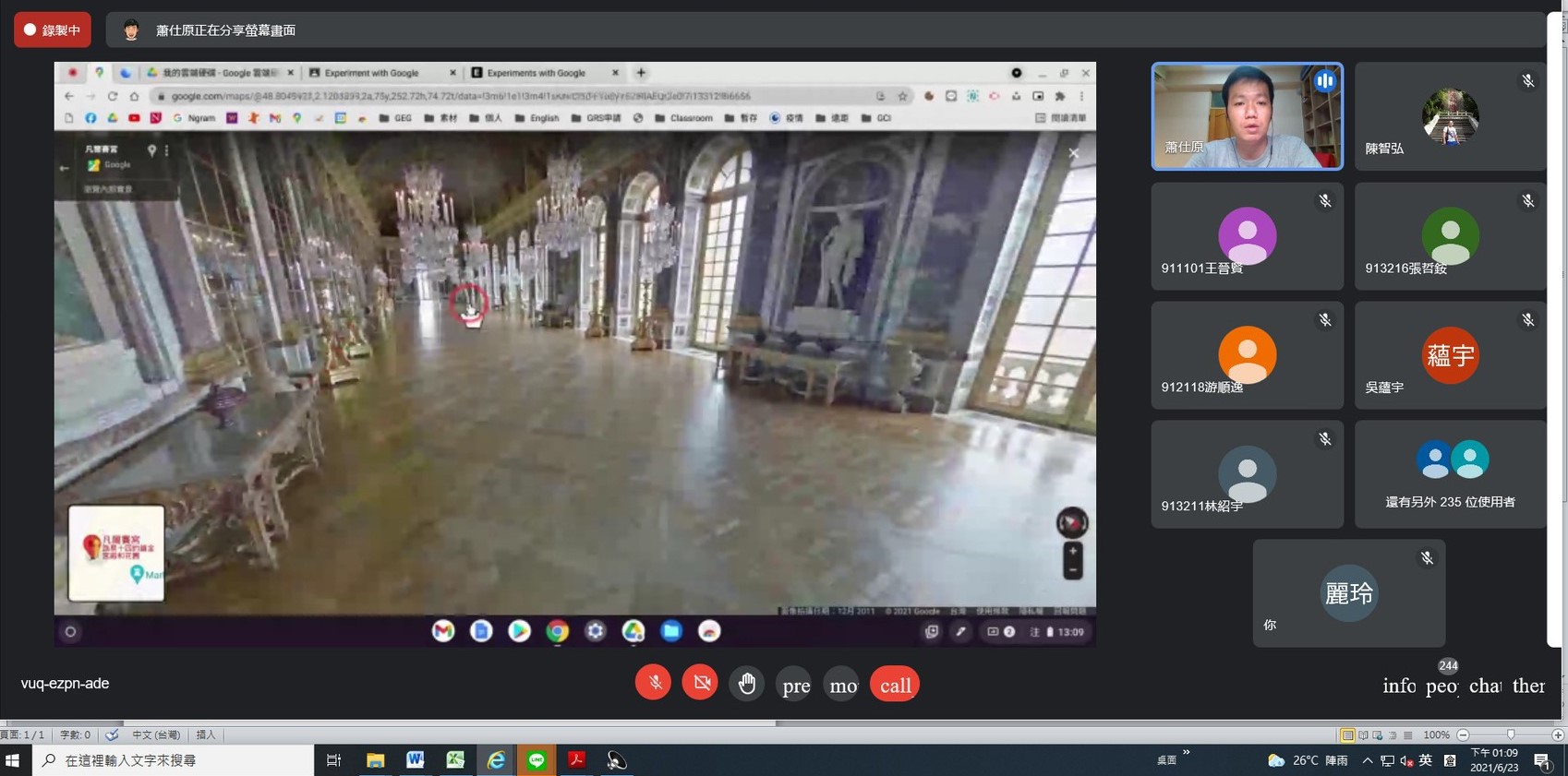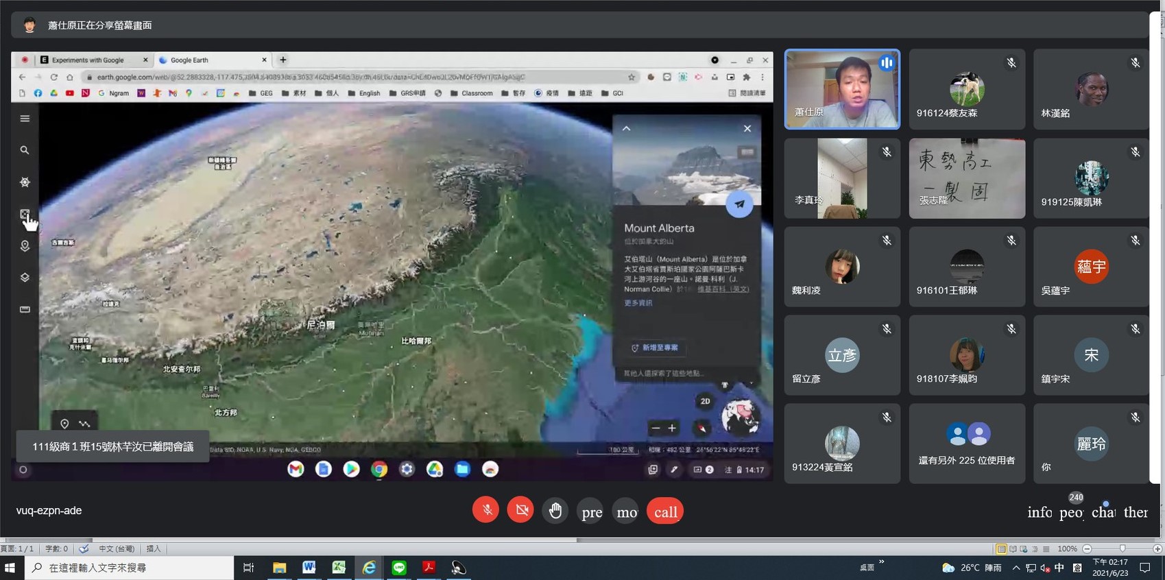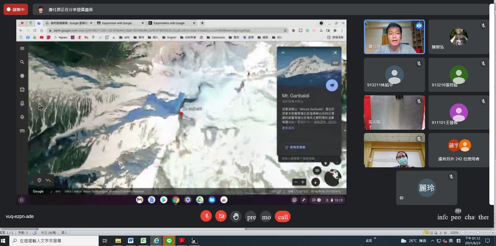 「老師,我好想出去走一走!」新社高中商業經營科主任范美娜在上課中聽到學生透露的心聲,透過跨校教師社群共備,邀請台中家商蕭仕原老師利用視訊會議,帶著新社高中及東勢高工的學生利用Google Earth俯視地球、翱翔天際,帶學生「跟著谷哥去旅行」,讓跨校跨班的同學,手牽手在線上環遊世界。