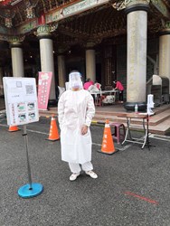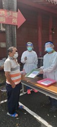 發放場域設置排隊間隔,維持室內1.5公尺、戶外1公尺社交距離