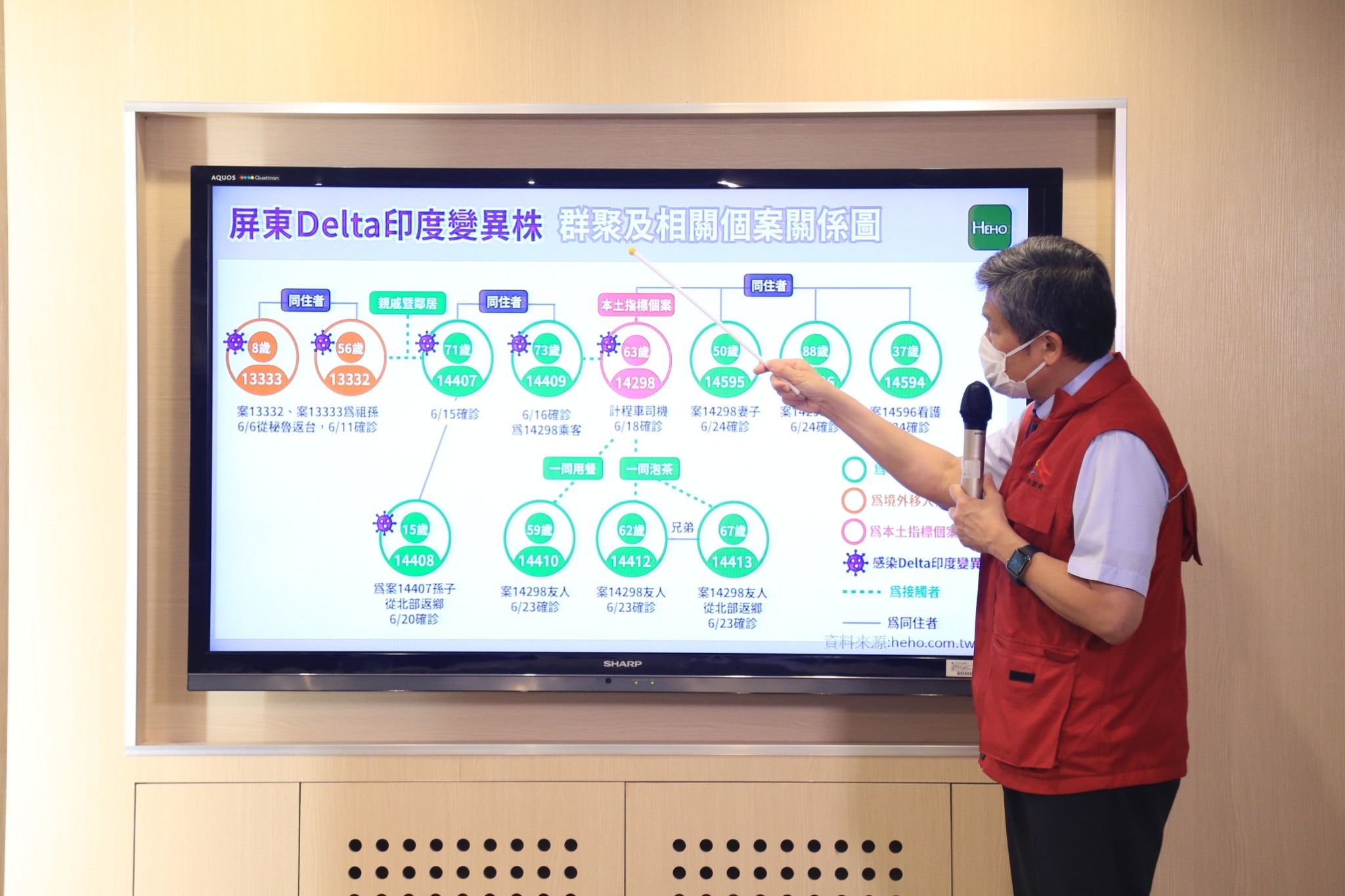 曾局長提醒,面對印度變異病毒株Delta,疫苗「完整接種第二劑」很重要,注射完兩劑AZ疫苗或BNT疫苗,可達9成以上的保護力,預防感染住院。他也提出市府防範Delta病毒三大策略,包括「加強普篩、疫苗接種、落實五大防疫」,即民眾加強落實戴口罩、勤洗手、保持社交距離、實名實聯制、分艙分流管理,並應完整接種2劑疫苗增強保護力,若有症狀儘速就醫診斷;呼籲中央應加強邊境防堵、協助確診者完成基因定序、擴大匡列疑似接觸者及擴大社區篩檢範圍等。(6/27*7)*衛生局