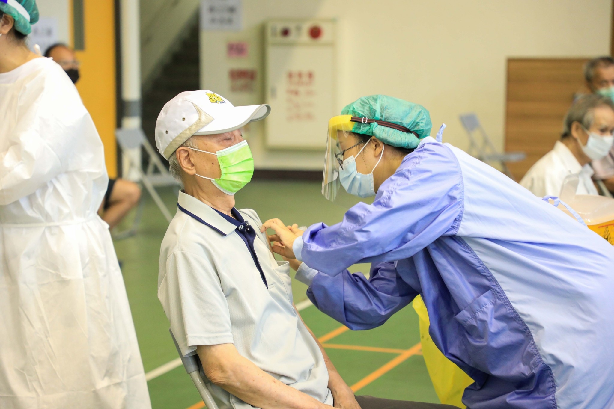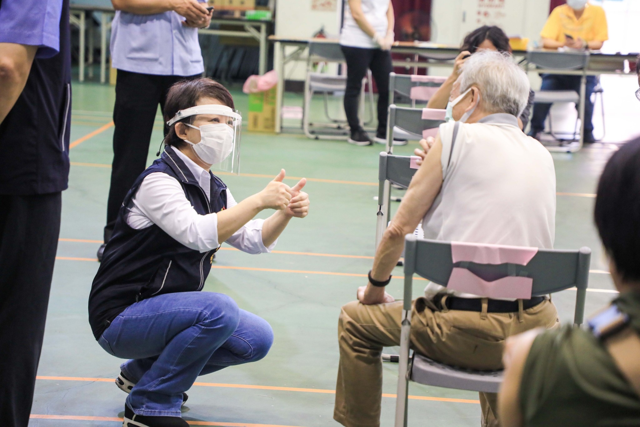 此外,全市67處快打站今、明兩日登場,開放已造冊但尚未施打的75歲以上長輩接種,盧市長視察完快篩站後,隨即前往進德國小快打站關心施打情形,其中不乏有長輩、長照人員及身障者,盧市長皆一一問候。接種後的民眾表示,此次選定的場所及動線流程皆適宜,有機會施打疫苗,覺得更安心。(7/3*17)*台中市政府
