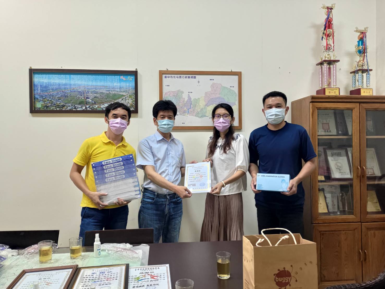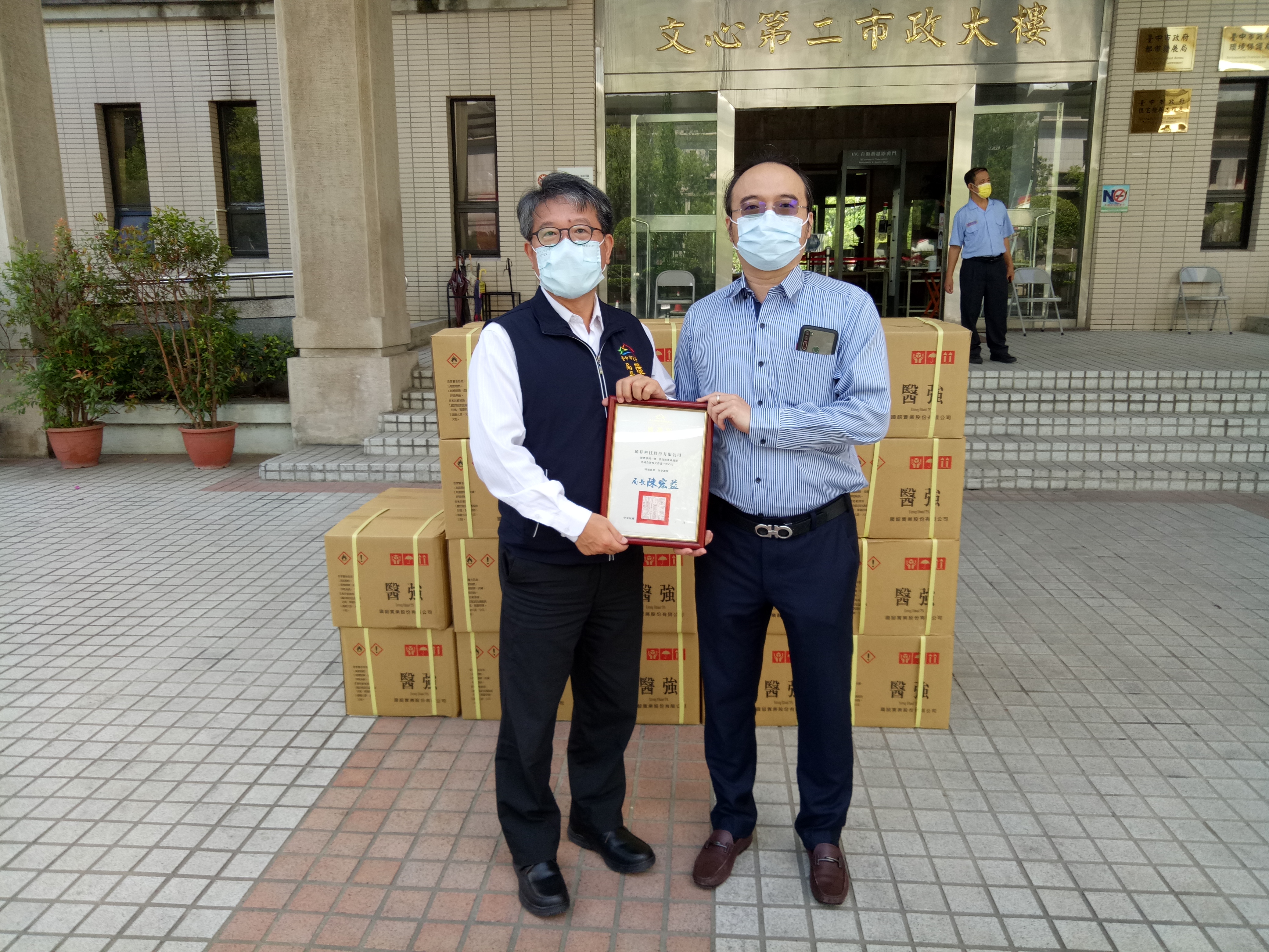 本土新冠疫情爆發近2個月,台中市政府環境保護局各區清潔隊每日穿梭於大街小巷執行清消作業,抗疫的汗水遍灑台中市每個角落,各界體恤環保基層同仁的辛勞,紛紛捐贈各種物資來為他們加油打氣,其中更有企業、公會、民意代表及民間團體等人的愛心物資,環保局長陳宏益表示,感謝各界暖心捐贈,以實際行動力挺第一線清潔人員。