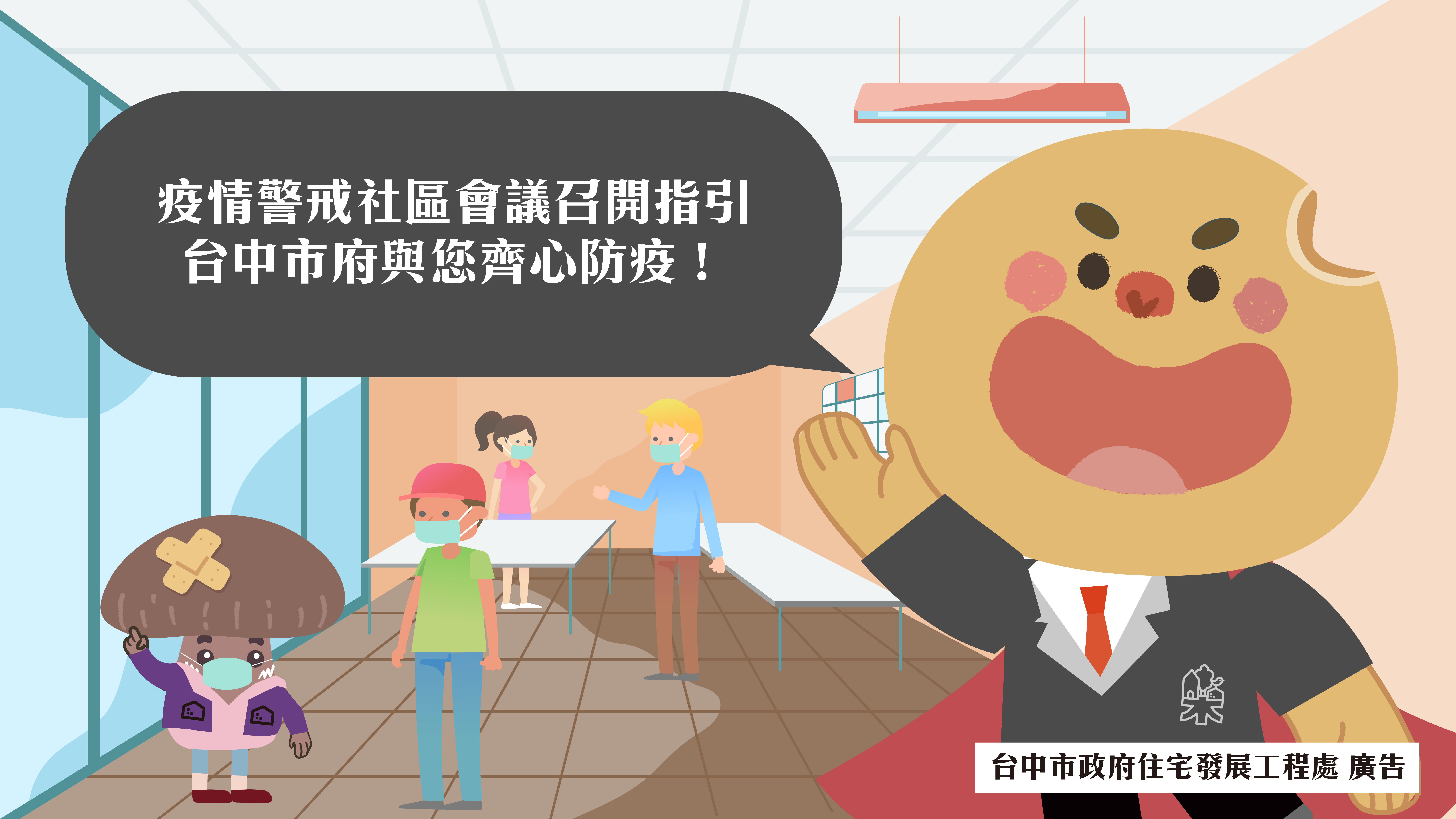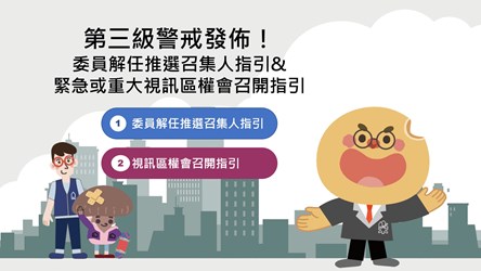 台中市住宅發展工程處協助社區降低疫情期間群聚,並兼顧社區管理組織持續運作,依據疫情警戒分級及中央規定,針對三級警戒停開區權會期間,委員任期屆滿、重大緊急議案開視訊區權會,以及二級警戒期間防疫區權會召開步驟,以輕鬆有趣的影片提供指引及建議作法,讓社區自治不停擺。