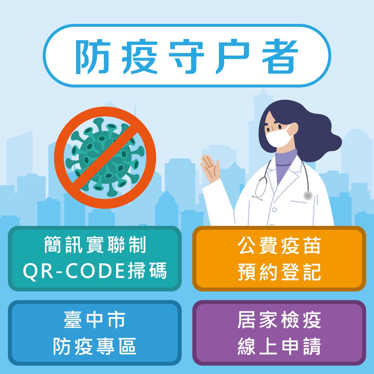 民政局指出,台中市民政服務系統防疫最即時,民眾可透過民政局「台中戶政ONLINE」官方LINE帳號( https://reurl.cc/eEa1aW )下方選單點選「防疫守戶者」,讓防疫資訊不漏接,7月31日以前加入好友還可週週抽好禮,歡迎民眾多加利用。(7/16*8)*民政局