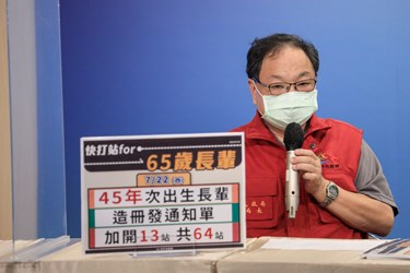 台中連日向中央爭取65歲民眾造冊施打疫苗,終獲中央點頭撥補,預計7月20日到貨,市長盧秀燕今(18)日於線上記者會表示,感謝中央撥補疫苗,疫苗送達後預計在7月22日開設快打站為民眾施打;同時,7月20至22日也安排台中市的國小老師與第二波學前兒童教育工作者約1萬7千人至快打站接種疫苗,並將針對18歲以上長照失能7至8級、不便前往醫院打疫苗的民眾提供「到府施打」服務,全方位照顧市民權益。