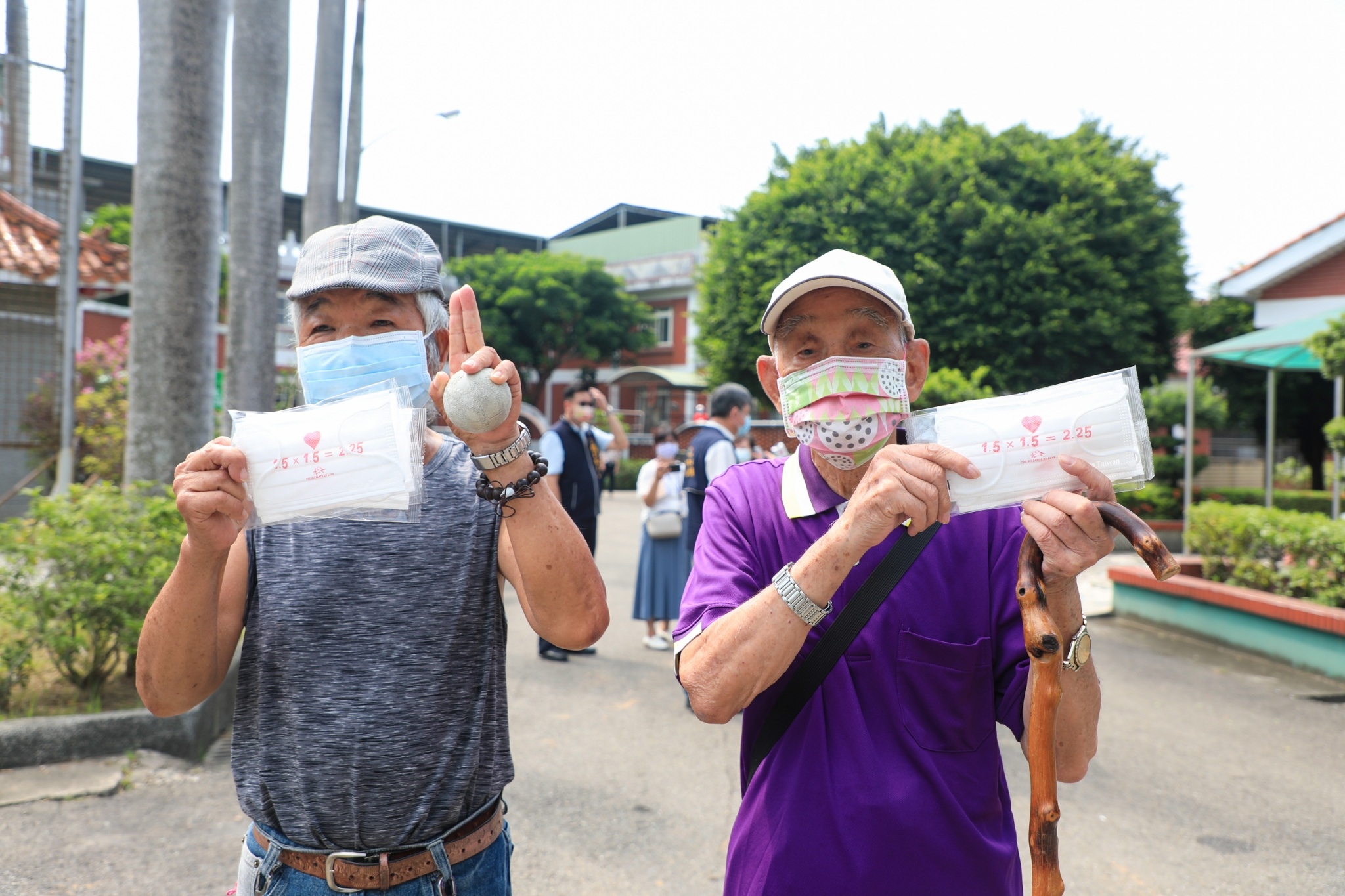 盧市長今日在社會局長彭懷真陪同下視察市立仁愛之家附設日照中心各項環境清消工作,關懷服務人員疫苗施打情形,途中遇到仁愛之家的高齡爺爺們,更親切問候並發放限量版的「愛的社交距離」口罩,允諾在做好防疫前提下讓各項社福服務逐步恢復。