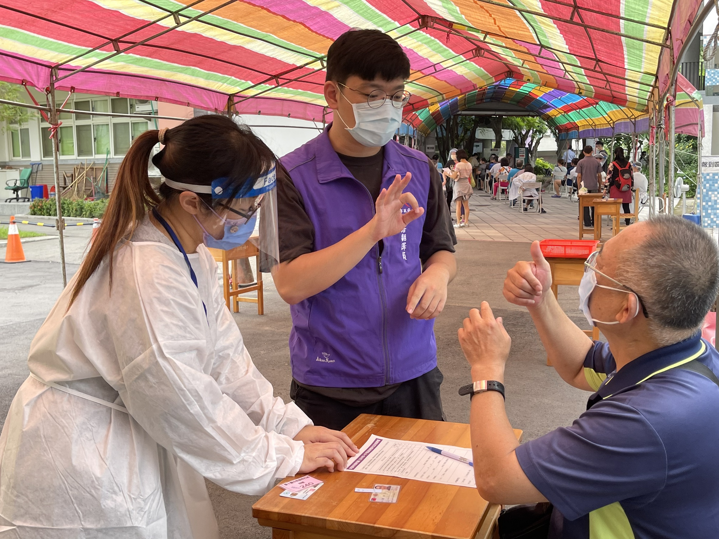 聽覺障礙的陳先生表示,他在確認接種疫苗時間後,向手語翻譯中心申請手語翻譯員服務。他感謝手語翻譯員全程陪伴打完疫苗,施打過程中翻譯員清楚轉譯施打疫苗流程、副作用,以及施打後各項注意事項,讓他更加了解安心。
