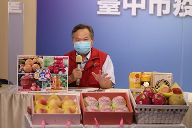 盧市長今日於台中市流行疫情指揮中心線上記者會力推台中當季盛產的水果,「防疫也要顧經濟!」她強調,今天透過防疫記者會,向全國市民推廣台中市農民辛苦種植的當季美味水果,有句話說「水蜜桃的故鄉在梨山」,梨山水蜜桃非常有名,還有紅龍果、台中蜂華的國產蜂蜜、東勢高接梨等,歡迎全國民眾捧場,用實際行動挺農民!
