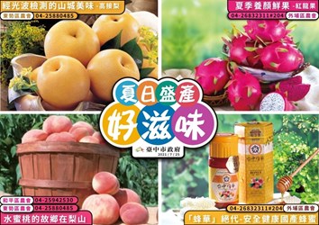 農業局指出,台中市養蜂產業集中在大里、太平、外埔、霧峰、北屯、后里、和平及豐原等八區,由農會輔導成立養蜂產銷班,蜂農們每年3至4月放養蜜蜂,採收質優量佳的龍眼蜜,並由市府辦理「台中蜂華」國產蜂蜜評鑑比賽,邀集專家學者嚴格評選,通過各項的安全檢驗,符合CNS國家標準,評選出特等獎、頭等獎等蜂蜜中的精華,每年6月下旬至7月上旬推出「台中蜂華」優質蜂蜜,提供更健康、安全的國產蜂蜜供消費者選購。訂購請電洽外埔區農會04-6832311分機204。(7/25*18)*農業局