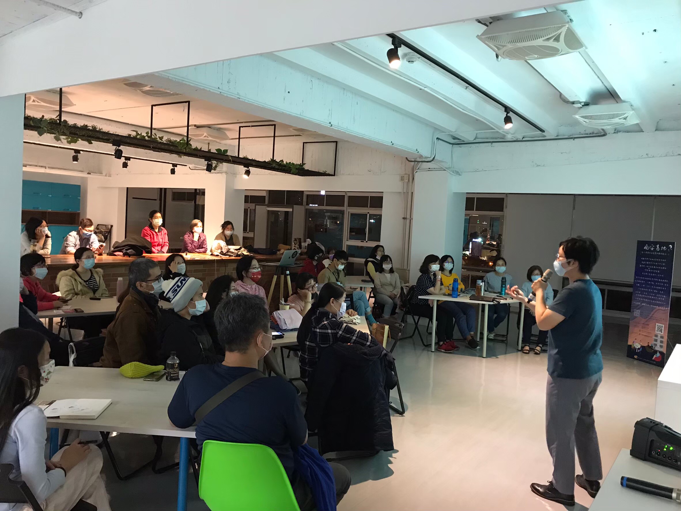 台中市政府為忙碌的上班族儲備知識能量,台中社會創新實驗基地自今年3月起新增晚間活動「晚安基地」,進駐團隊規劃多項活動,如講座、桌遊、手作坊、展覽等,邀請民眾參與,反應熱烈,於全國疫情三級警戒前已超過百人報名參加,不僅增進空間的多元使用,更透過交流對話,吸引更多人關注社會創新議題。