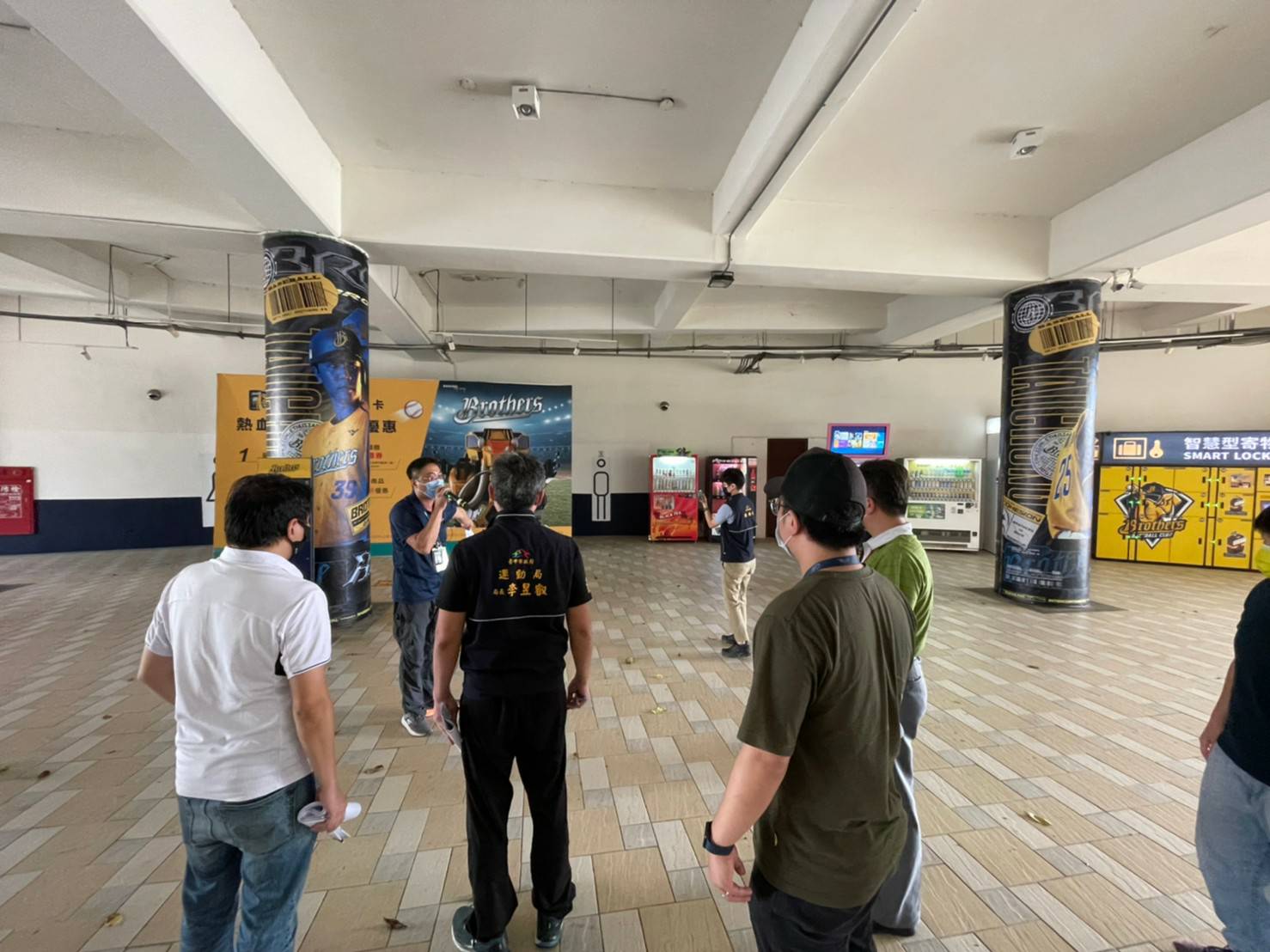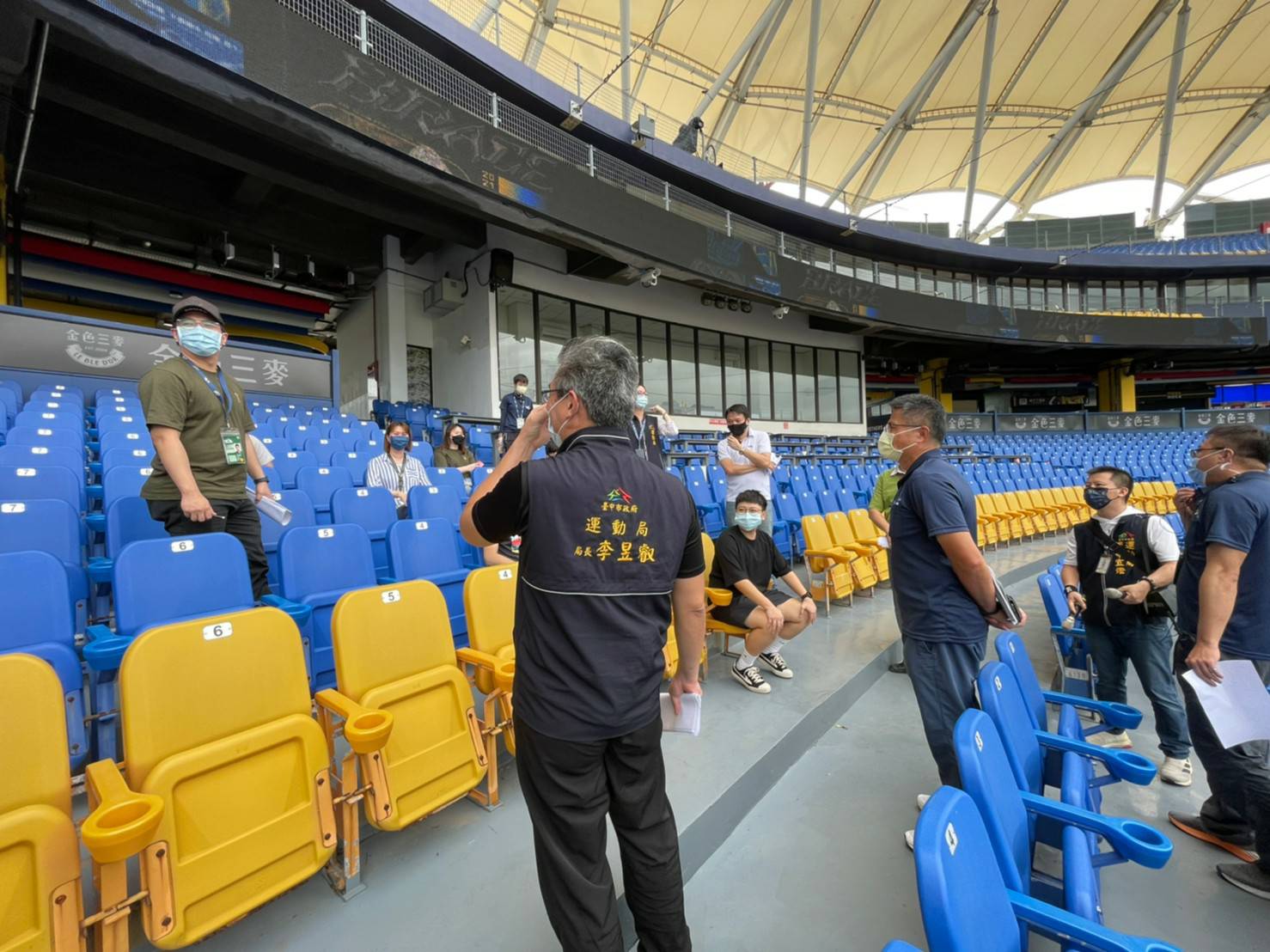 此外,球場內不販售任何食物並禁止飲食,若因生理需求(喝水、服藥、哺乳)飲食者,須保持社交距離,並於飲用完畢後盡速戴口罩;離場時應配合現場工作人員指示,維持社交安全距離,分區分流依序離場,主辦單位在出入口處等排隊區域皆標示安全距離地貼,要求民眾保持社交安全距離。