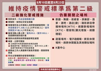 此外,入場人員採預約制或人員造冊,並需落實實聯制、量體溫、手部消毒,除游泳外,全程佩帶口罩,泳池不開放淋浴間及附屬區域,包括兒童戲水池區、冷熱水池區、SPA區、烤箱、蒸氣室等,並定期分時段清消至少30分鐘。